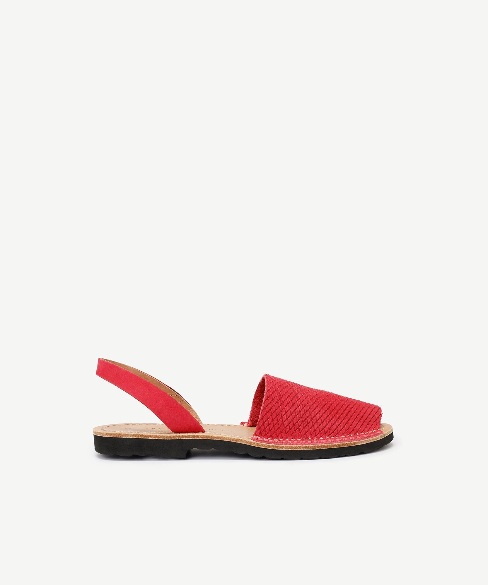 Rahat eva topuklar ve deri iç tabana sahip nubuk sandalet, renginin çekiciliğini kusursuz deri işçiliğiyle vurguluyor. İspanya ya özgü bir model olan bu sandaletleri kırmızı, beyaz, mavi ya da yeşil tonlarında elbise ve eteklerle buluşturarak iç açıcı bir yaz stili yakalayabilirsiniz.