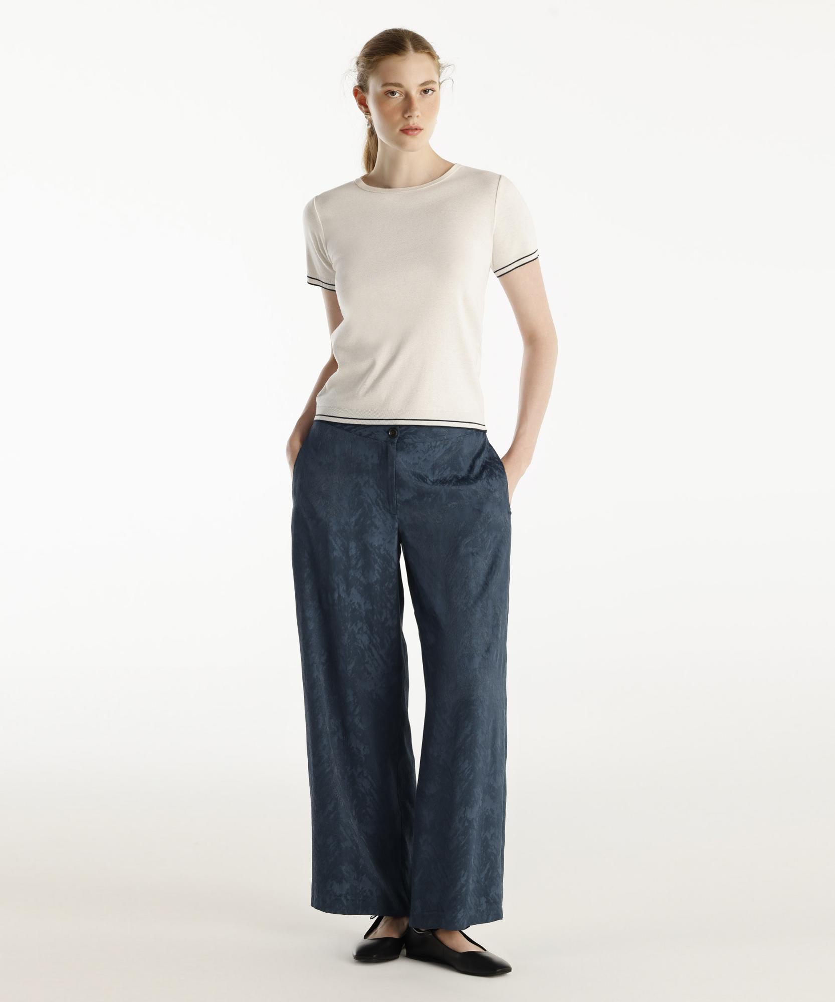 Bu pantolon, geniş paça kesimi ve rahat yapısıyla şıklığı ve konforu bir araya getirir. Yüksek belli tasarımı, belinizi vurgulayarak zarif bir görünüm sunar. Düz renkli bir bluz veya kazak ile kombinleyerek hem günlük hem de ofis şıklığını yakalayabilirsiniz. Topuklu botlarla tamamlayarak modern ve sofistike bir stil oluşturabilirsiniz.