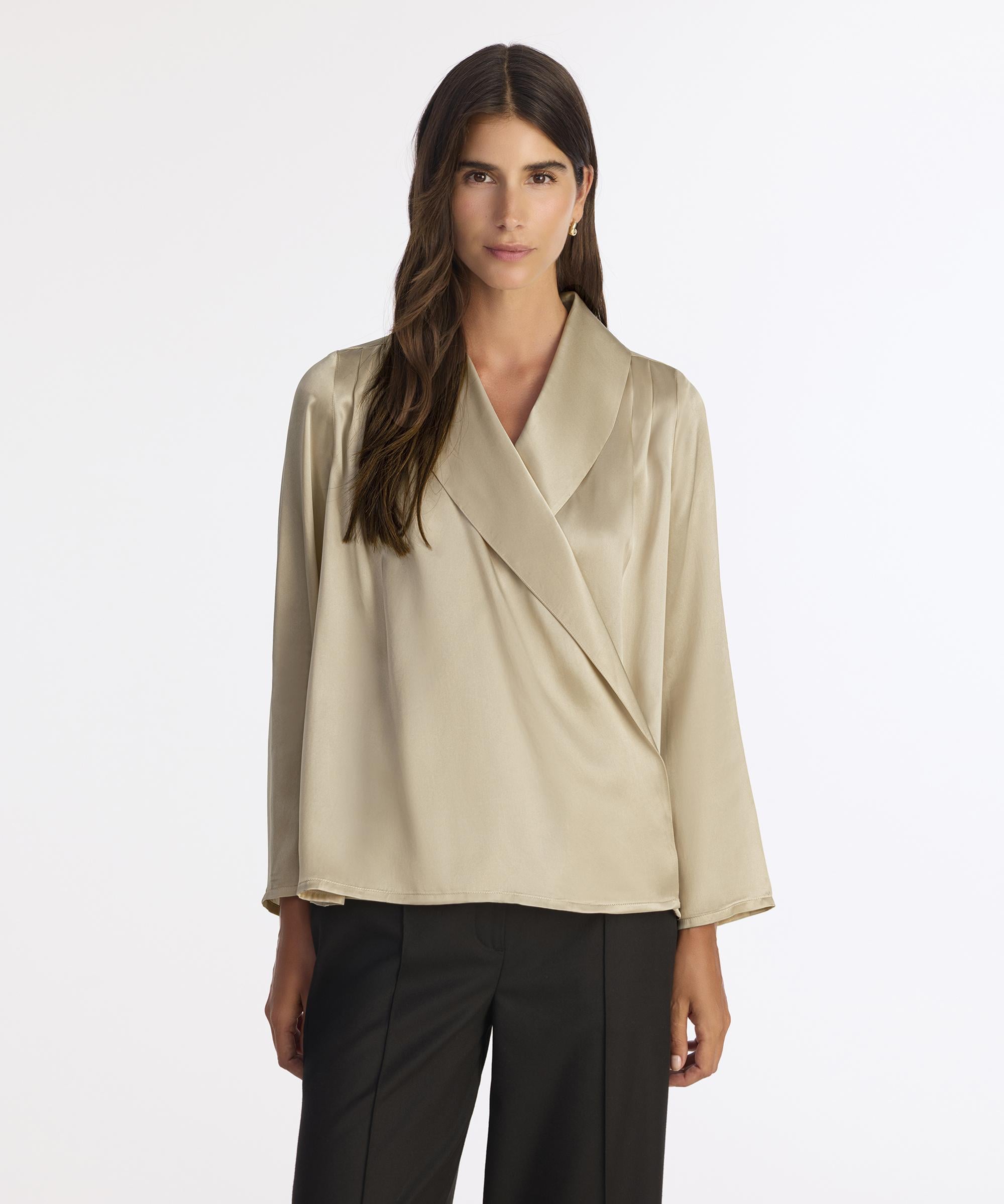 Yumuşak ipek dokusuyla dikkat çeken bu kruvaze kesim gömlek, zarif ve feminen bir görünüm sunuyor. Düşük omuz kesimi ve geniş yaka detayları sayesinde sofistike bir stil elde etmenizi kolaylaştırıyor. Kış sezonunda triko pantolonlar ve topuklu botlarla tamamlayarak sıcak ve şık bir kombin oluşturabilirsiniz. Gündüzden geceye şıklığınızı taşımak isteyenler için şık bir alternatif sunar.