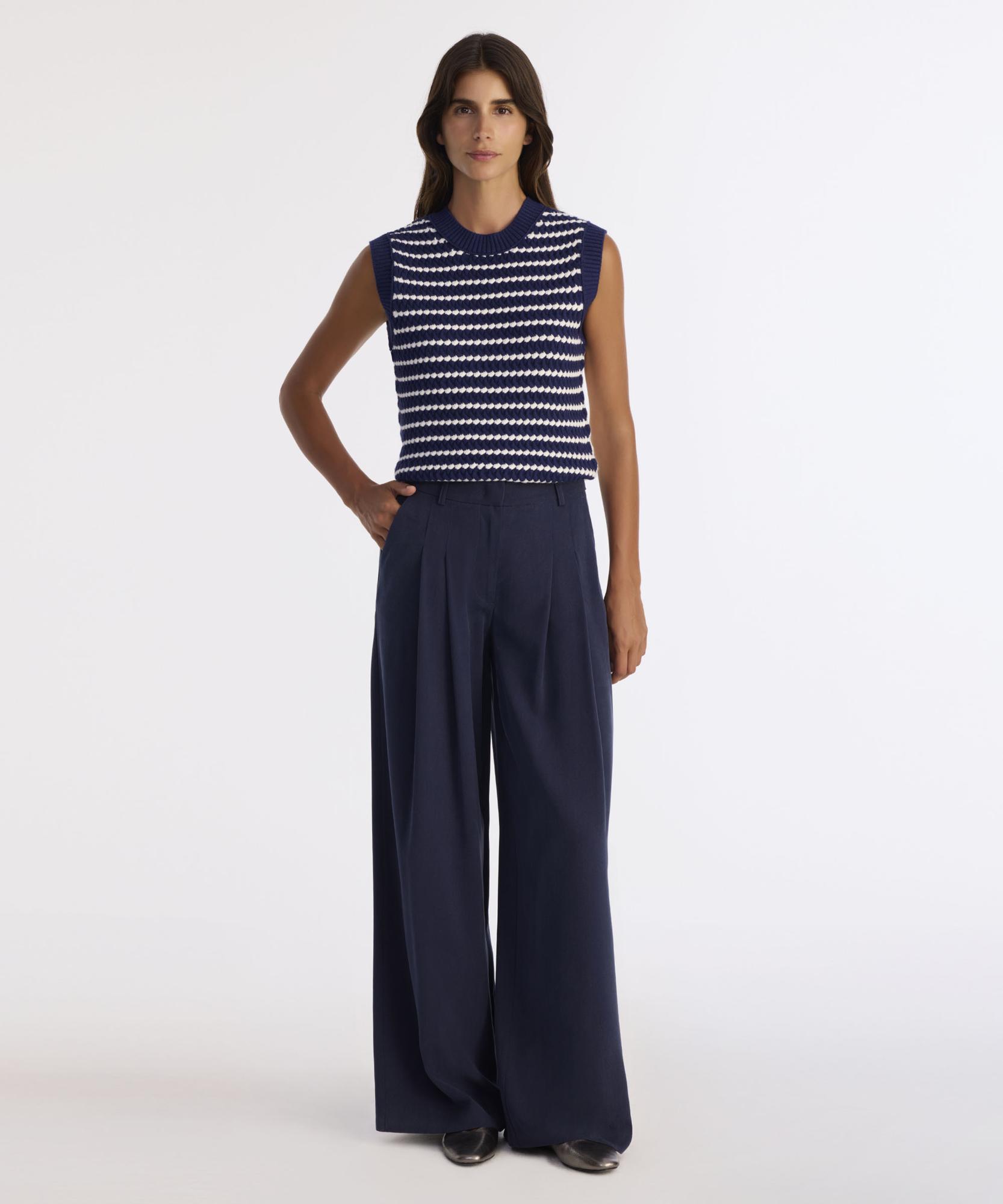 Yumuşak dokulu ve dökümlü yapısıyla kış aylarında zarif bir sıcaklık sunan bu pantolon, pilili formu sayesinde klasik bir şıklık yaratıyor. Geniş paça kesimi ile hareket özgürlüğü sağlarken stilinizi zarifçe tamamlıyor. Triko kazak ve kısa topuklu botlarla kombinleyerek şık bir kış görünümü elde edebilirsiniz. Günlük ve ofis kombinleri için zarif bir alternatif sunar.