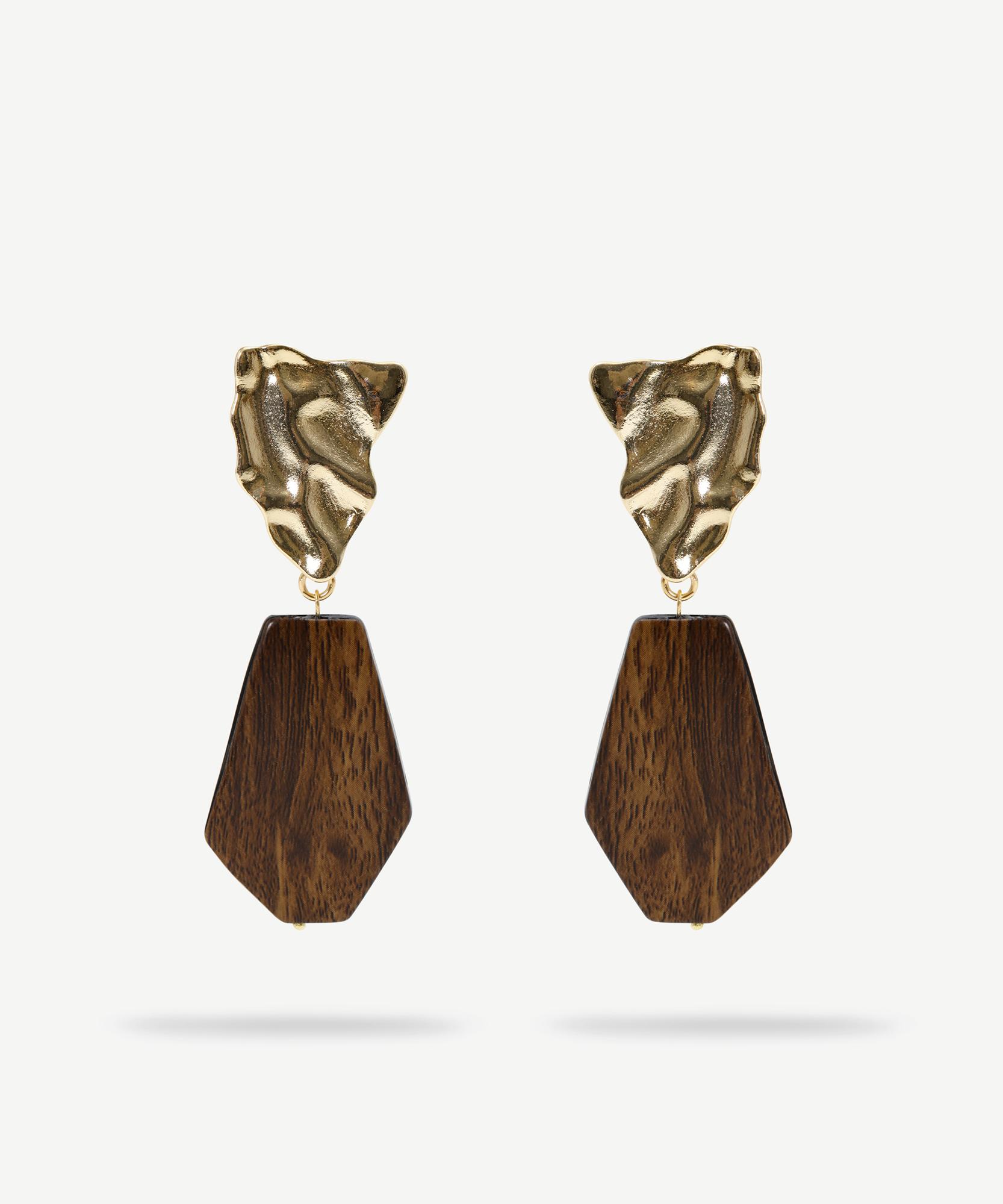 Doğadan ilham alan geometrik formlu ahşap küpe, doğal ve sıcak bir estetik sunuyor. Metal ve ahşabın kusursuz uyumu sayesinde modern ve bohem tarzları bir arada taşıyor. Hafif yapısıyla gün boyu rahat bir kullanım sağlarken, özgün formuyla dikkatleri üzerine çekiyor.