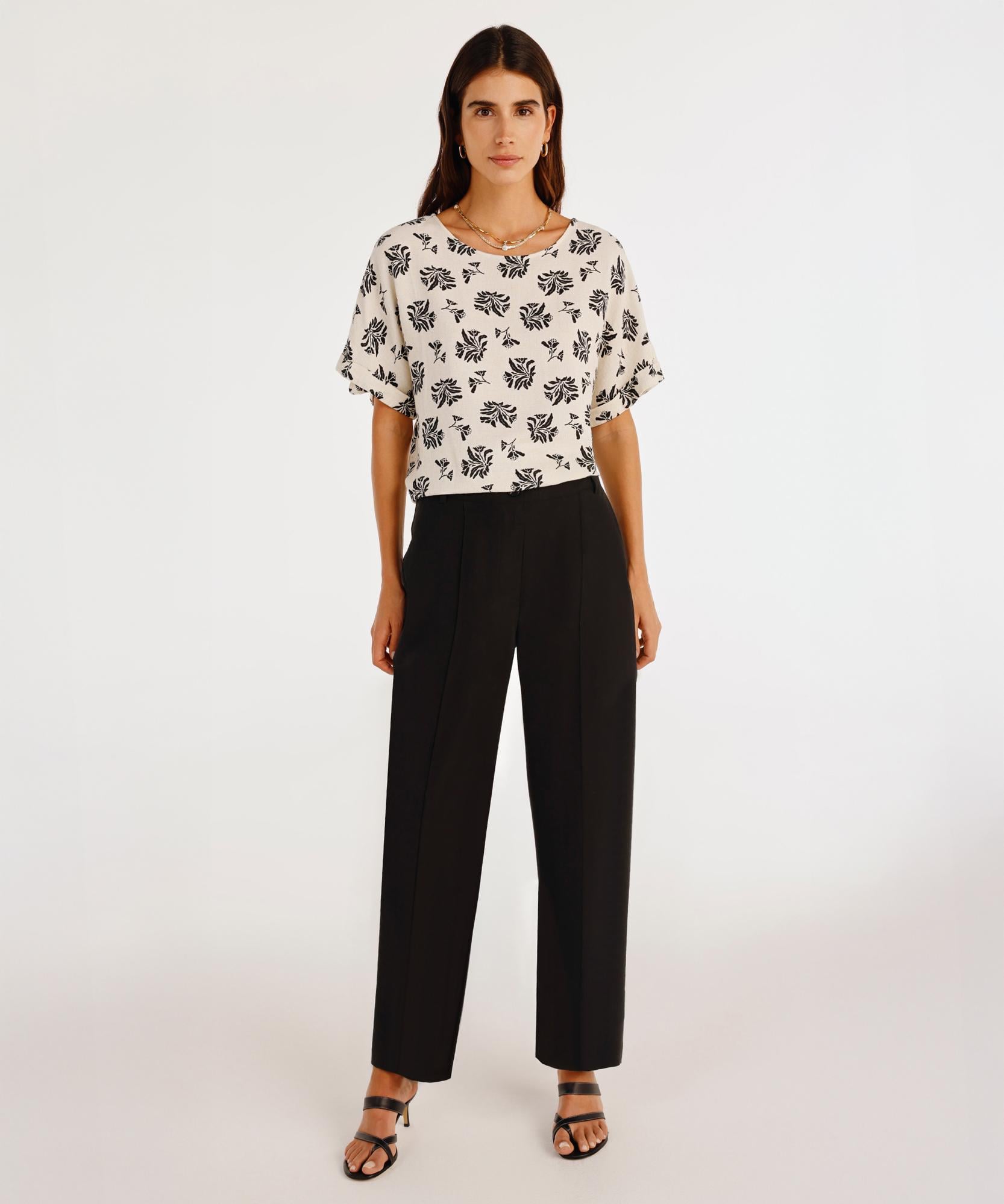 Modern kesimiyle dikkat çeken bu pantolon, klasik ve spor şıklığı bir araya getiriyor. Yüksek beli ve geniş paça yapısı ile bacak boyunu uzun gösterirken, gömlek veya basic üstlerle kombinlenerek farklı tarzlara uyum sağlayabilir.