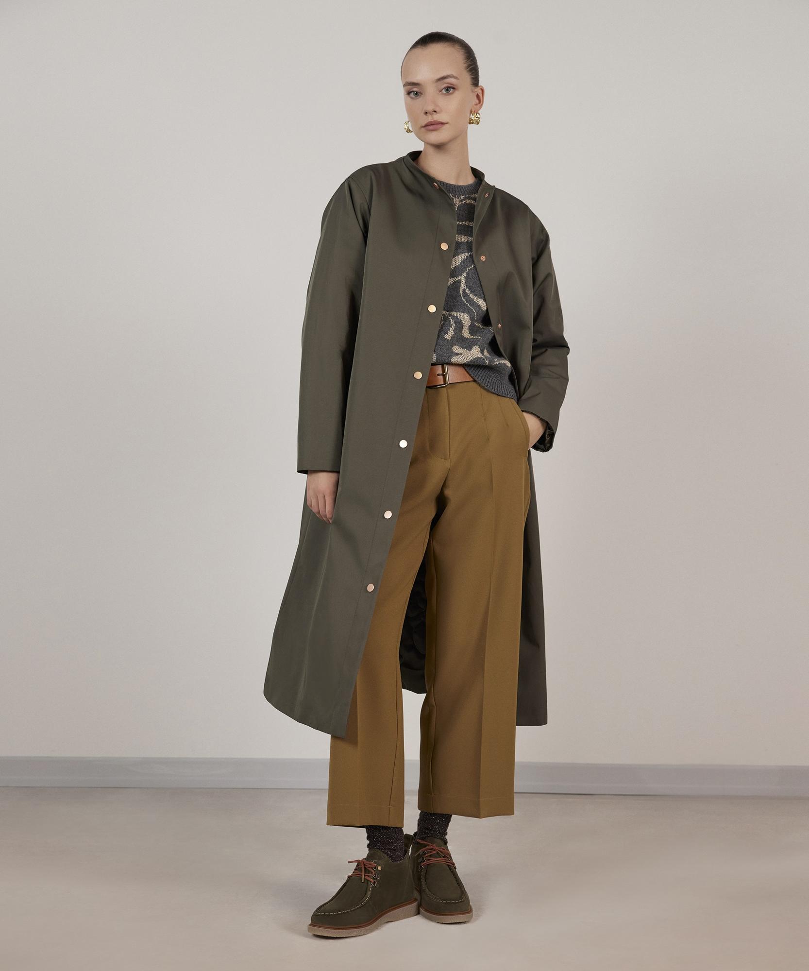 Yakasız pardösü iç dolgusuyla serin havalarda sizi sıcak tutaarak izolasyon sağlıyor. Bu fütüristik tasarımı klasik kombinlerinizin modern vurgusunu artırmak için kullanabilirsiniz.