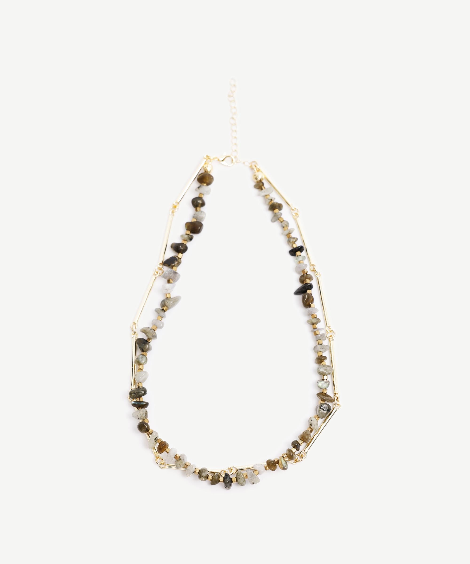 Doğal formdaki taş detaylarıyla karakter kazanan bu kolye, mevsimin zamansız şıklığını yansıtır. Katmanlı yapısı sayesinde hem tek başına hem de farklı kolyelerle kombinlenerek özgün bir görünüm oluşturur. Özellikle boğazlı kazak ve basic trikolarla mükemmel bir uyum yakalar. Günlük stillere sofistike bir dokunuş eklemek isteyenler için ideal bir tercihtir.