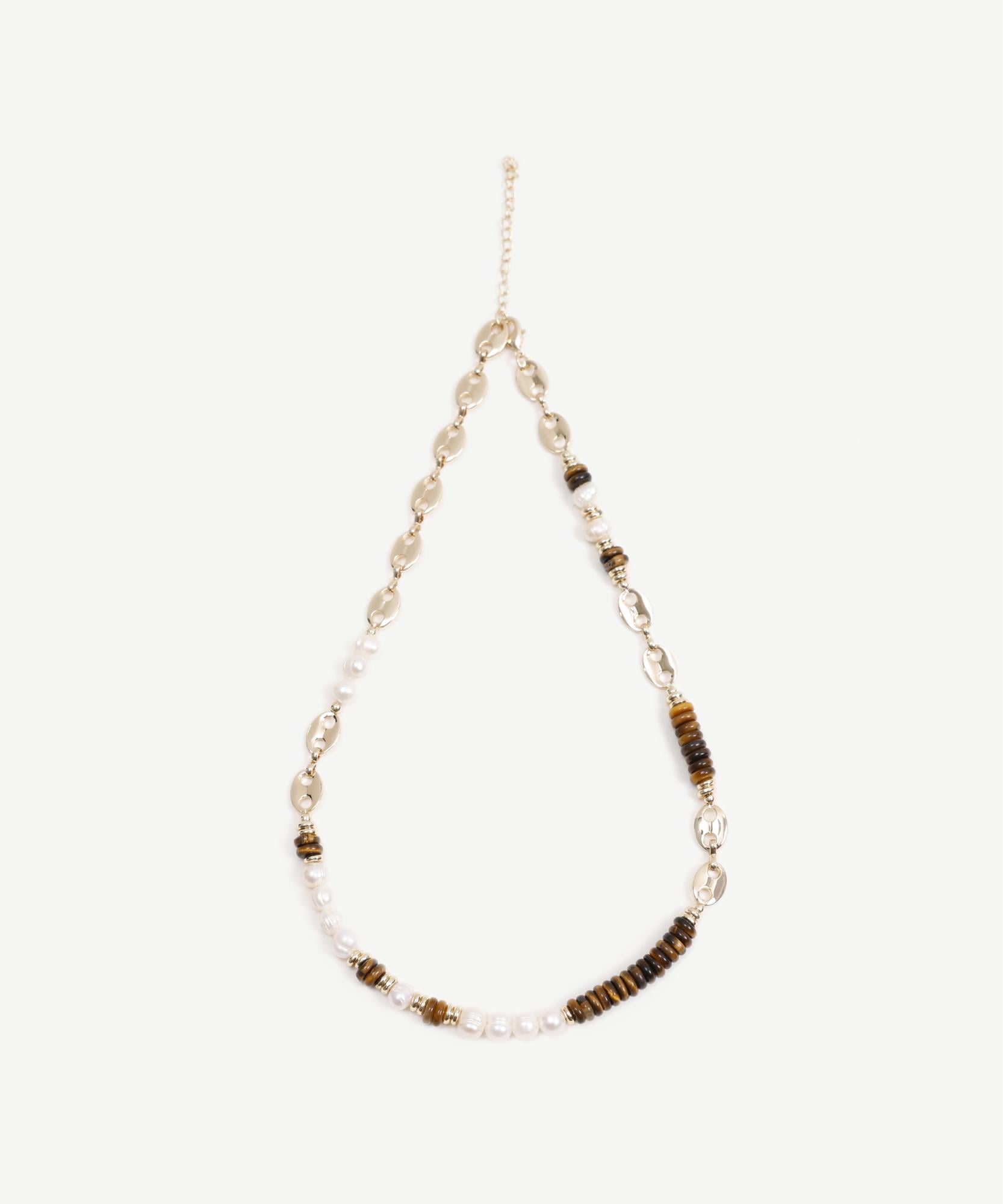 İnci ve taş detaylı bu zarif kolye, şıklığınızı tamamlar. Günlük kullanımda beyaz bir gömlekle veya özel davetlerde şık bir elbiseyle kombinleyebilirsiniz.