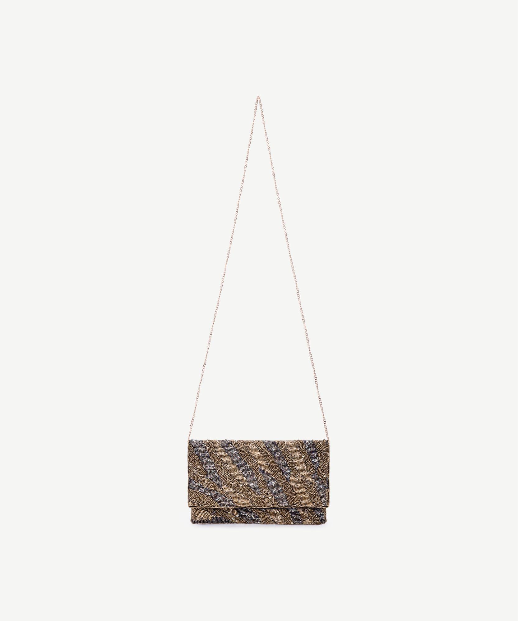 Şık tasarımıyla göz kamaştıran bu el çantası, boncuk işlemeleriyle zarif bir duruş sergiliyor. Zincir askısıyla hem omuzda hem elde taşınabilecek şekilde tasarlanıyor. Özel günlerde şıklığınızı tamamlayacak zarif bir aksesuar alternatifi sunar. Klasik elbiselerle veya düz tonlarda takımlarla harika bir uyum yakalar.