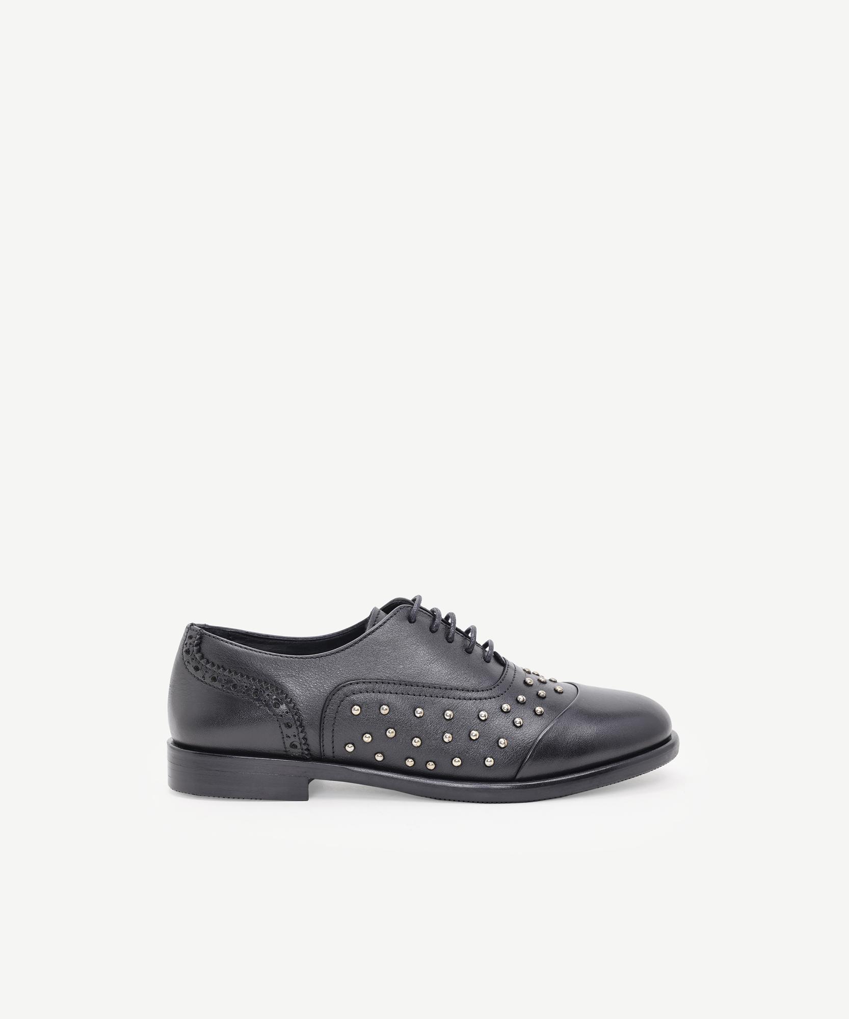 Metalik detaylı bu Oxford ayakkabılar, şıklık ve cesur stil sunar. Kumaş pantolon ve ceketle ofis stilinizi tamamlayabilir, midi etek ve bluzla şık davetlerde dikkat çekebilirsiniz.