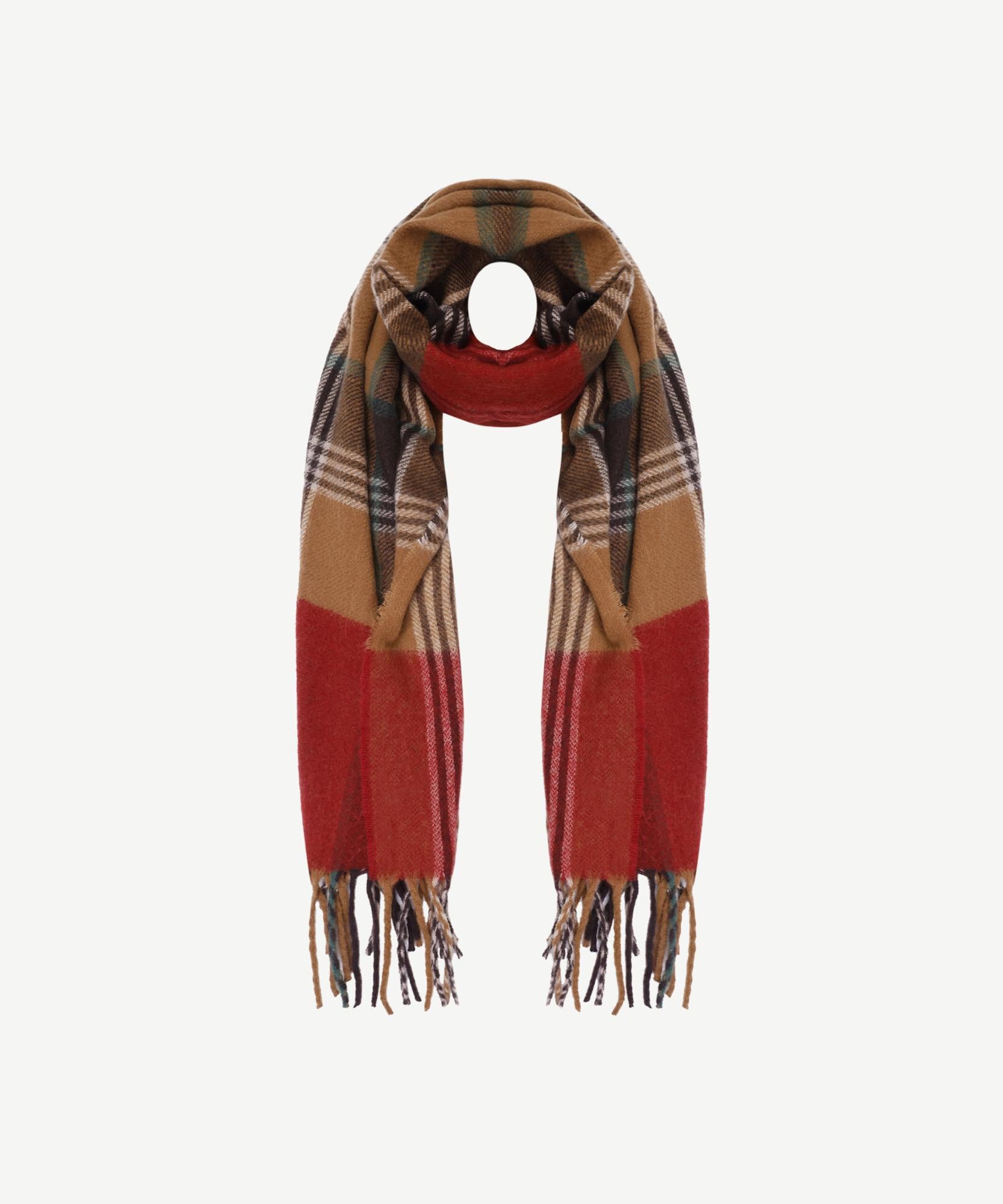 Sıcak kahverengi ve kırmızı tonlarının buluştuğu bu ekose desenli şal, klasik stilin modern bir yansımasını sunuyor. Yumuşak dokusu ve püskül detaylarıyla soğuk günlerde hem şıklık hem konfor sağlar. Gündelik kombinlerden şehir şıklığına kadar geniş bir kullanım alanı sunan bu parça, kış gardırobunun vazgeçilmez tamamlayıcısı olmaya aday.