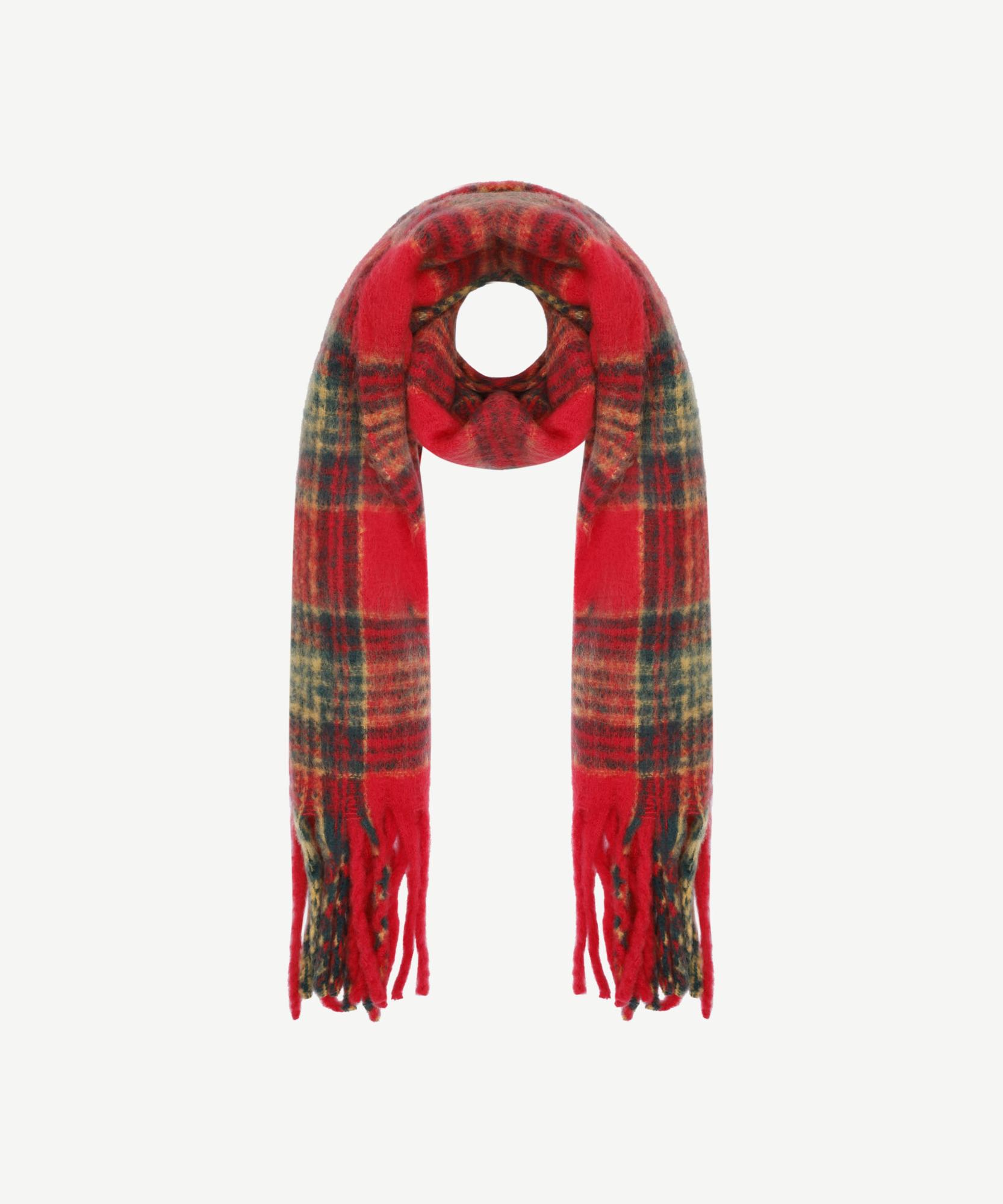 Canlı kırmızı tonlarıyla enerjik bir duruş sergileyen bu ekose desenli şal, yumuşak dokusu ve kalın yapısıyla soğuk havalarda maksimum konfor sunar. Yeşil ve sarı tonlarla zenginleşen desen yapısı, klasik kış stiline modern bir yorum katar. Püskül detaylarıyla tamamlanan bu parça, sade kombinlere renk ve hareket kazandırmak için ideal bir tamamlayıcıdır.