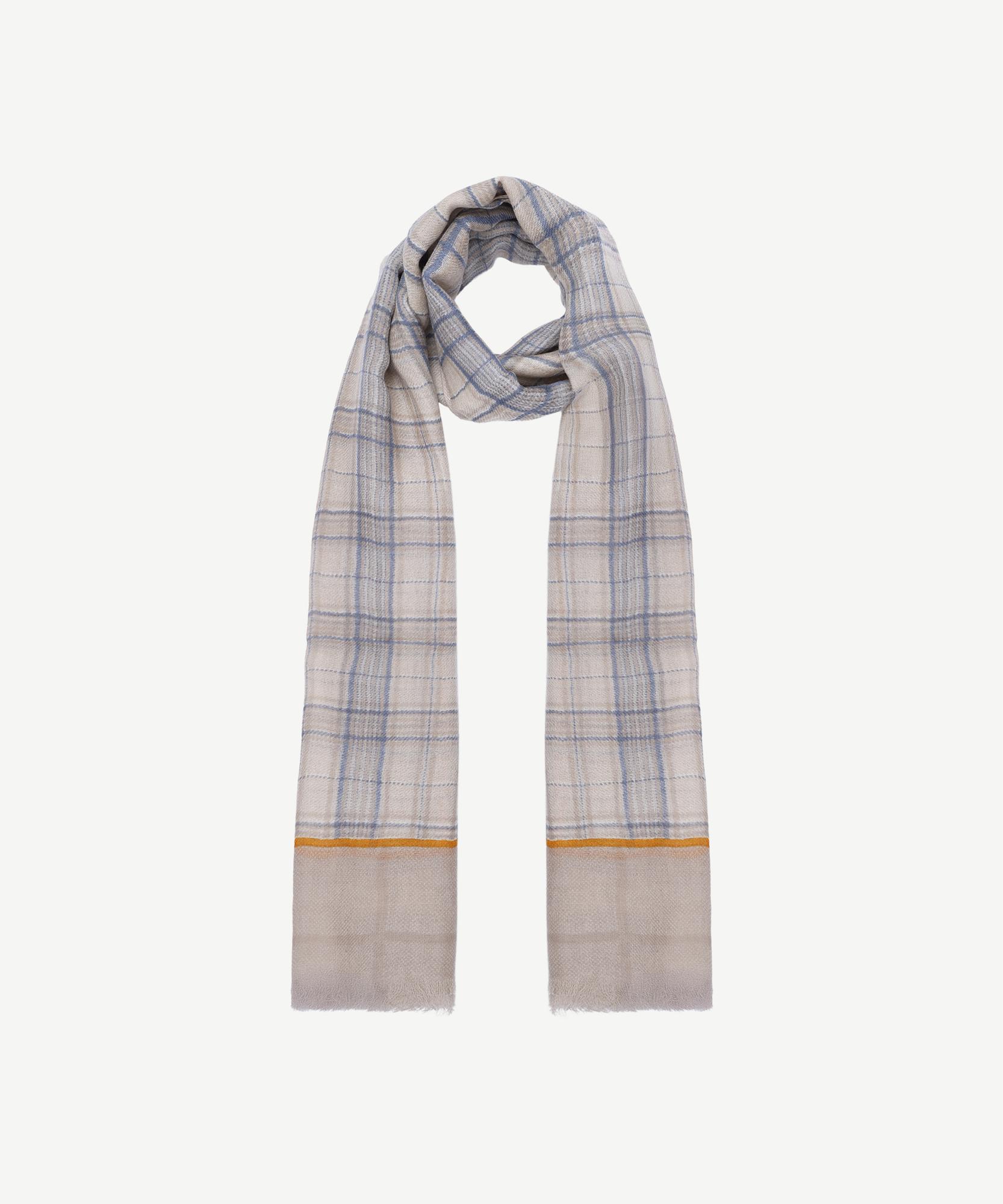 Kareli deseni ve uç detaylarındaki zarif geçişlerle sade ama dikkat çekici bir görünüm sunan bu şal, kış stilinize modern bir dokunuş katıyor. İnce dokusu sayesinde gün boyu hafiflik hissi sağlar. Özellikle trençkot veya kaşe kabanlarla kombinlendiğinde şıklığınızı tamamlar.