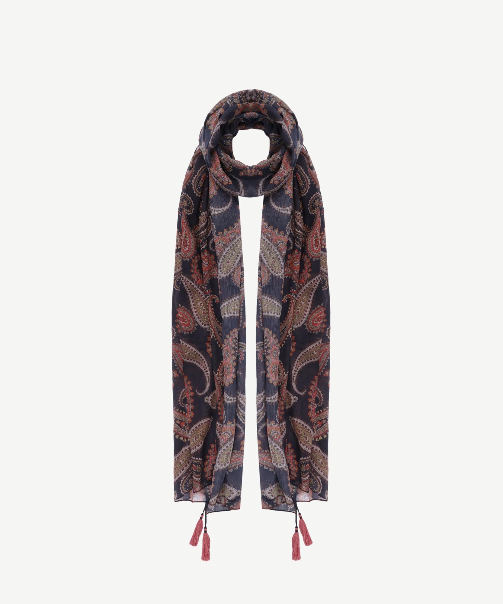Zarif paisley desenleriyle bezeli bu şal, geleneksel motiflere modern bir yorum getiriyor. Uç kısımlarındaki püskül detayları ise tasarıma hareket katarken, günlük stilinize bohem ve şık bir dokunuş sunuyor.