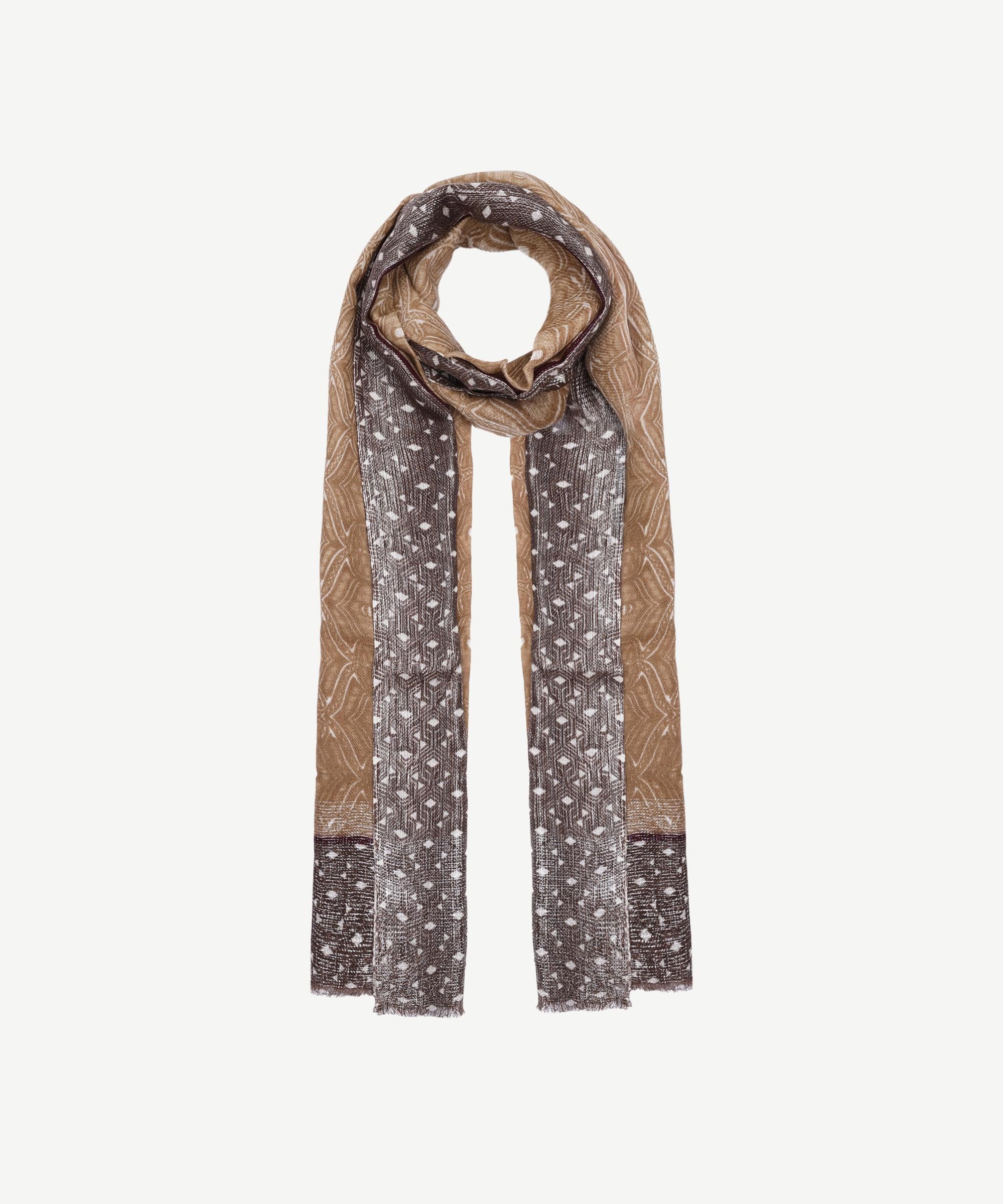 Doğal tonlar ve etnik desenlerin birleşimiyle öne çıkan bu şal, kış stilinize sıcak ve özgün bir hava katıyor. Hafif yapısıyla boynunuzu nazikçe sararak gün boyu konfor sağlıyor. Düz renk kaban ve süet çizmelerle kombinlendiğinde şıklığınızı ön plana çıkarır.