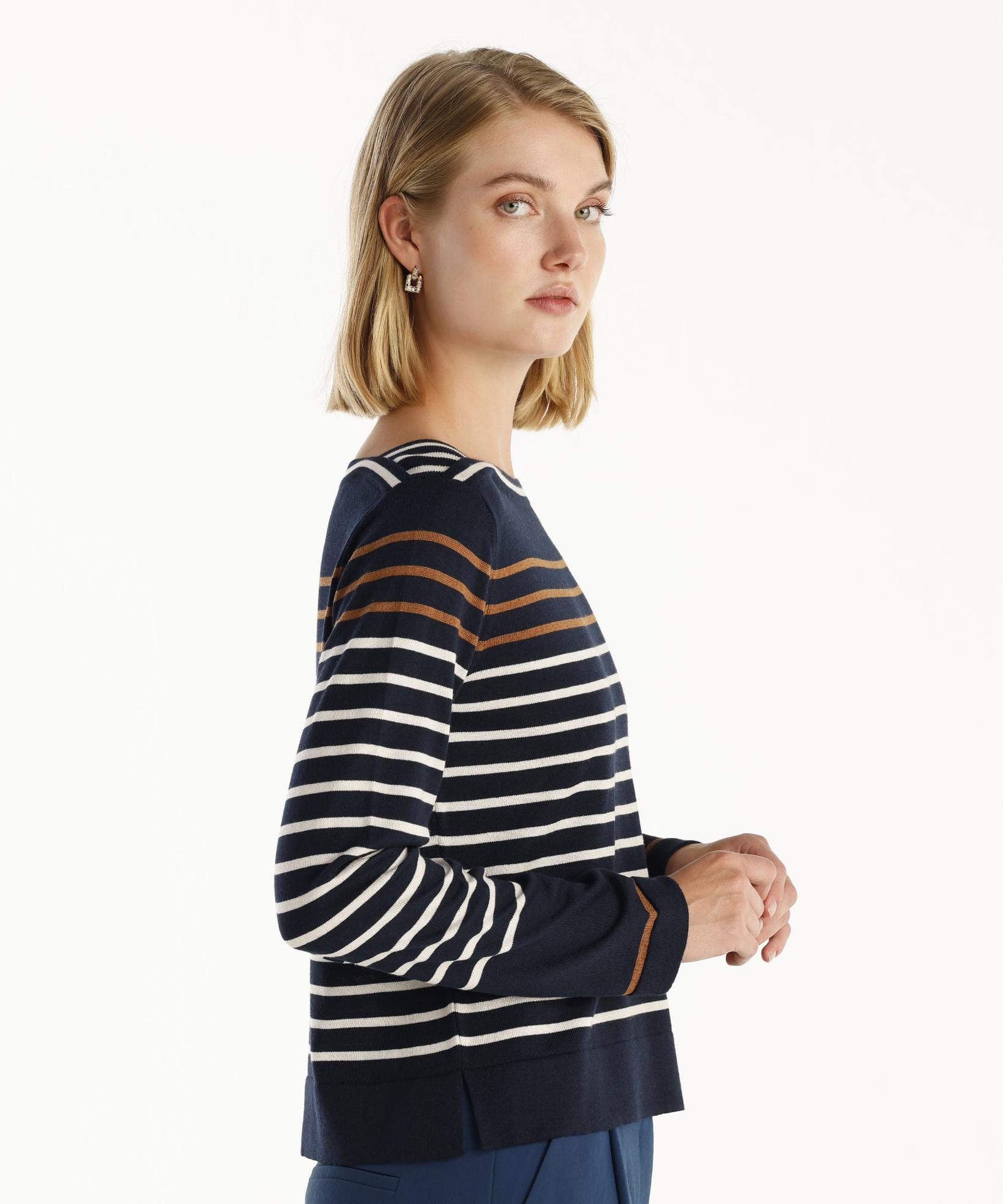 Bu kazak, çizgili desenleriyle klasik bir görünüm sunar. Günlük kombinlerinizde veya iş ortamında kullanabileceğiniz bu parça, hem rahat hem de şık bir seçim olacaktır.