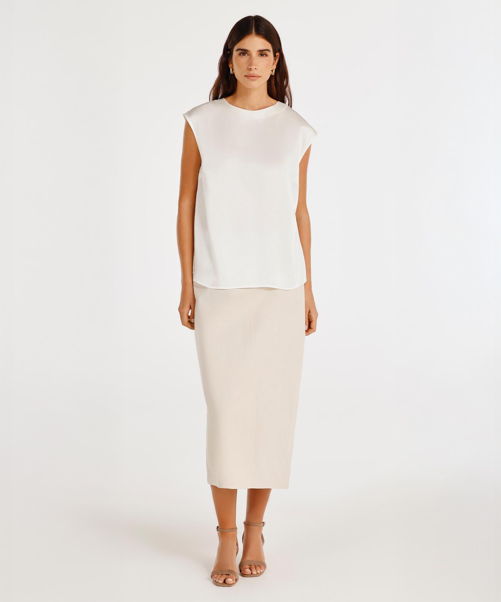 İpek dokusu ve parlak yüzeyiyle sofistike bir görünüm sunan bu bluz, klasik ve modern tarzı birleştiriyor. Jean ve topuklu ayakkabılarla şehir stiline, kumaş pantolonla ofis şıklığına uyum sağlar.