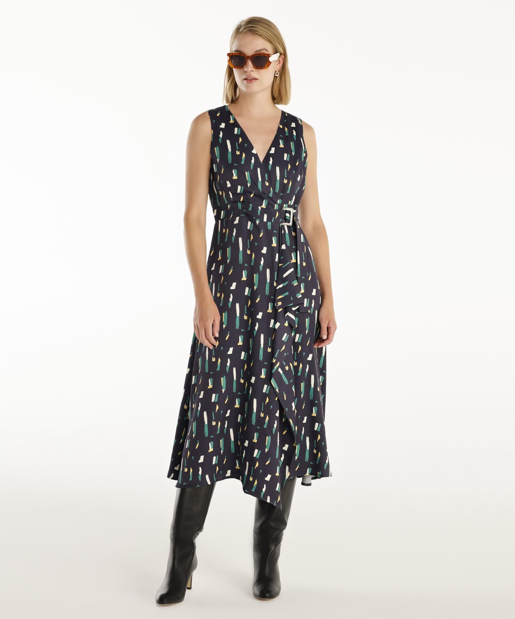 YARGICI Kemer Detaylı Kolsuz Kruvaze Midi Boy Elbise