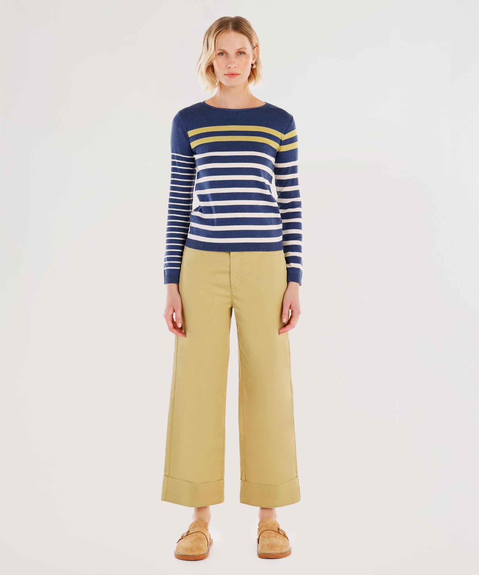 Geniş paça kesimi ve hafif kumaşıyla dikkat çeken pantolon, gün boyu konfor sağlar. Yüksek beli sayesinde şık bir duruş sunarken, modern ve minimal tasarımıyla her stile uyum sağlar. Günlük veya şık kombinlerle kolayca tamamlanarak zamansız bir parça haline gelir.