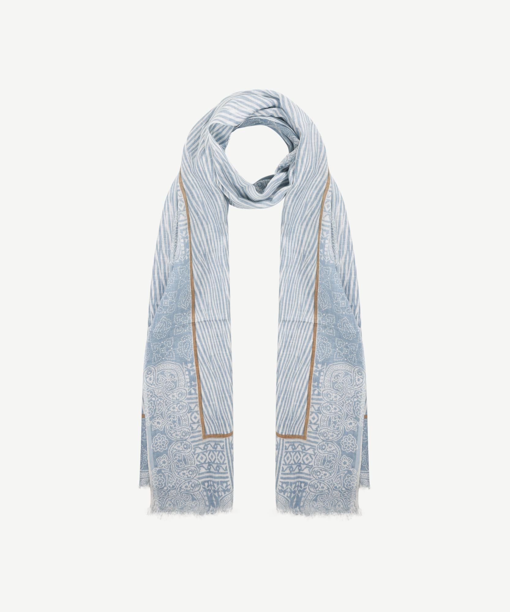 Düz çizgiler ve desenli detaylarıyla dikkat çeken bu şal, zarif ve minimal bir görünüm sunuyor. Gündelik kullanım için jean ve tişörtlerle, daha klasik kombinlerde ise kumaş pantolon ve ceketlerle tamamlanabilir. Hafif ve akışkan yapısıyla gün boyu rahat bir kullanım sağlar.