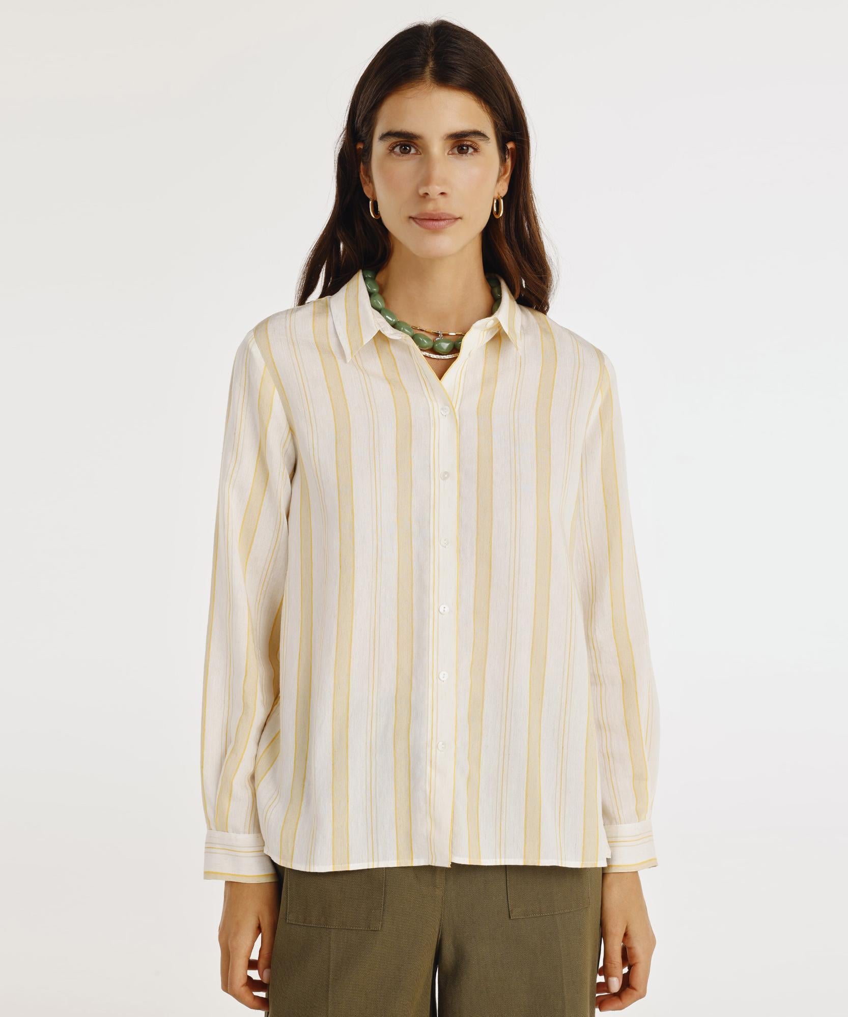 Klasik çizgili tasarımıyla öne çıkan bu uzun kollu gömlek, ofis şıklığı veya günlük kullanım için uygundur. Düğmeli yapısı sayesinde açık veya kapalı şekilde kullanılabilir. Kumaş pantolonlarla resmi bir görünüm elde edebilir, sneakerlarla rahat bir tarz oluşturabilirsiniz.
