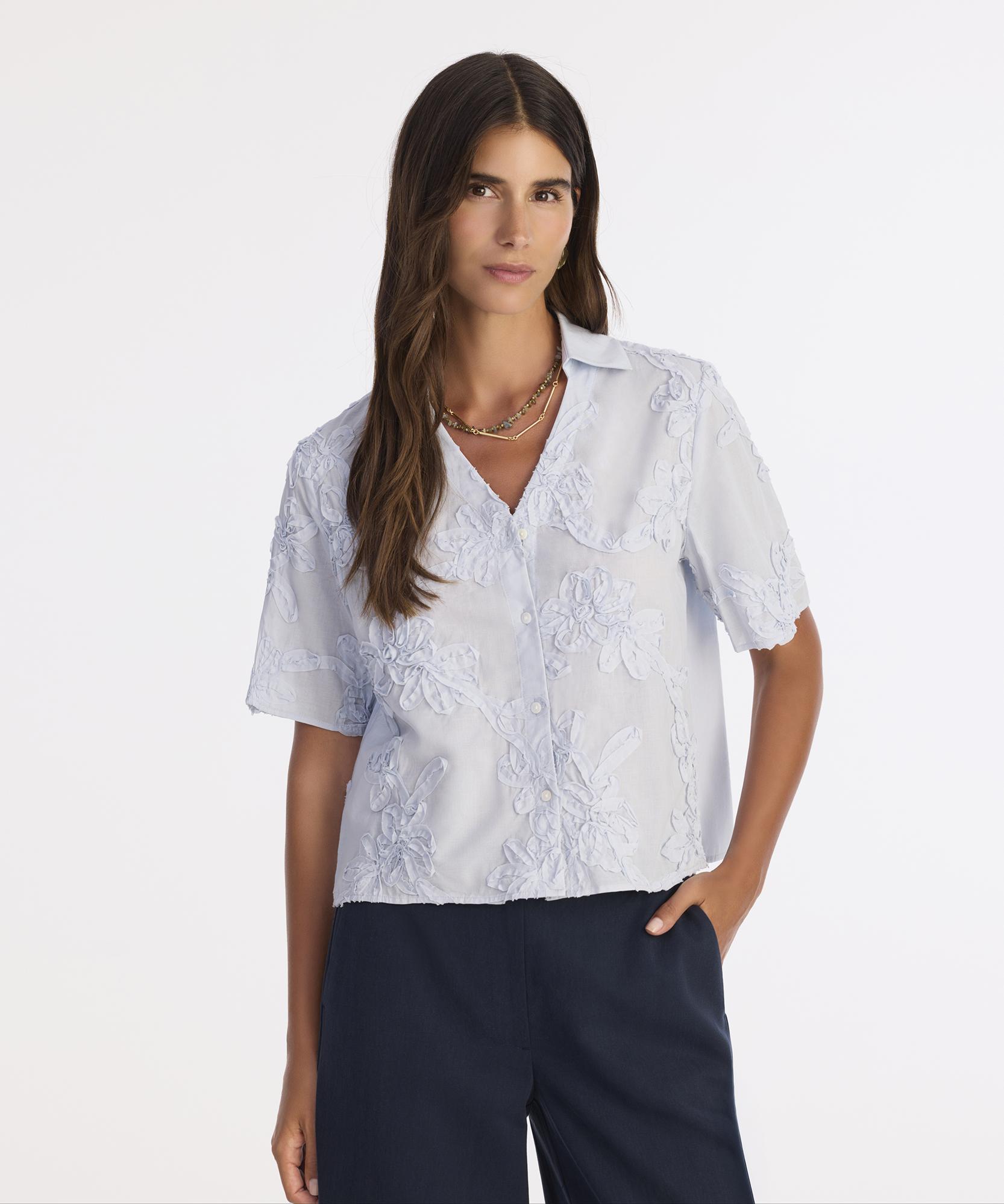 Dantel benzeri dokusuyla zarif bir görünüm sunan bu kısa kollu gömlek, ince detaylarıyla fark yaratır. V yaka kesimi ve hafif transparan yapısı ile katmanlı kış kombinlerine şık bir alternatif oluşturur. Soğuk havalarda içerisine balıkçı yaka body giyerek veya yumuşak dokulu trikolarla tamamlayarak stilinizi ön plana çıkarabilirsiniz. Kendine özgü dokusuyla dolabınızda özel bir yer edinecek.