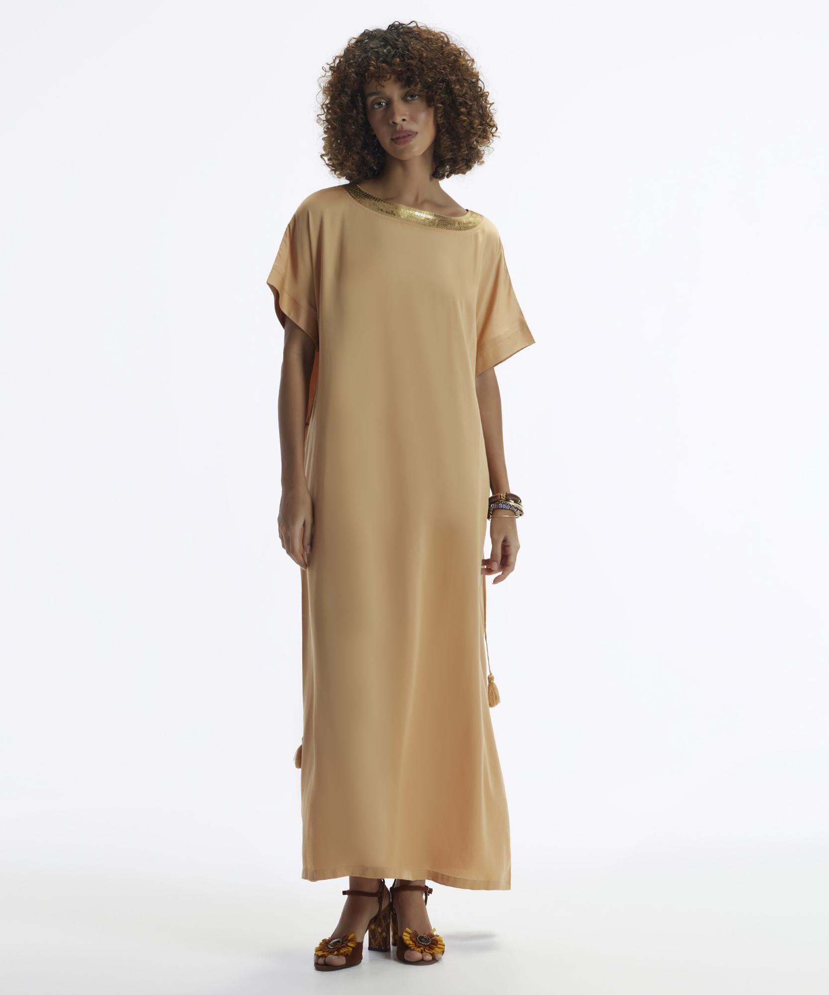YARGICI Kısa Kollu Yakası Pullu Düz Kesim Uzun Elbise