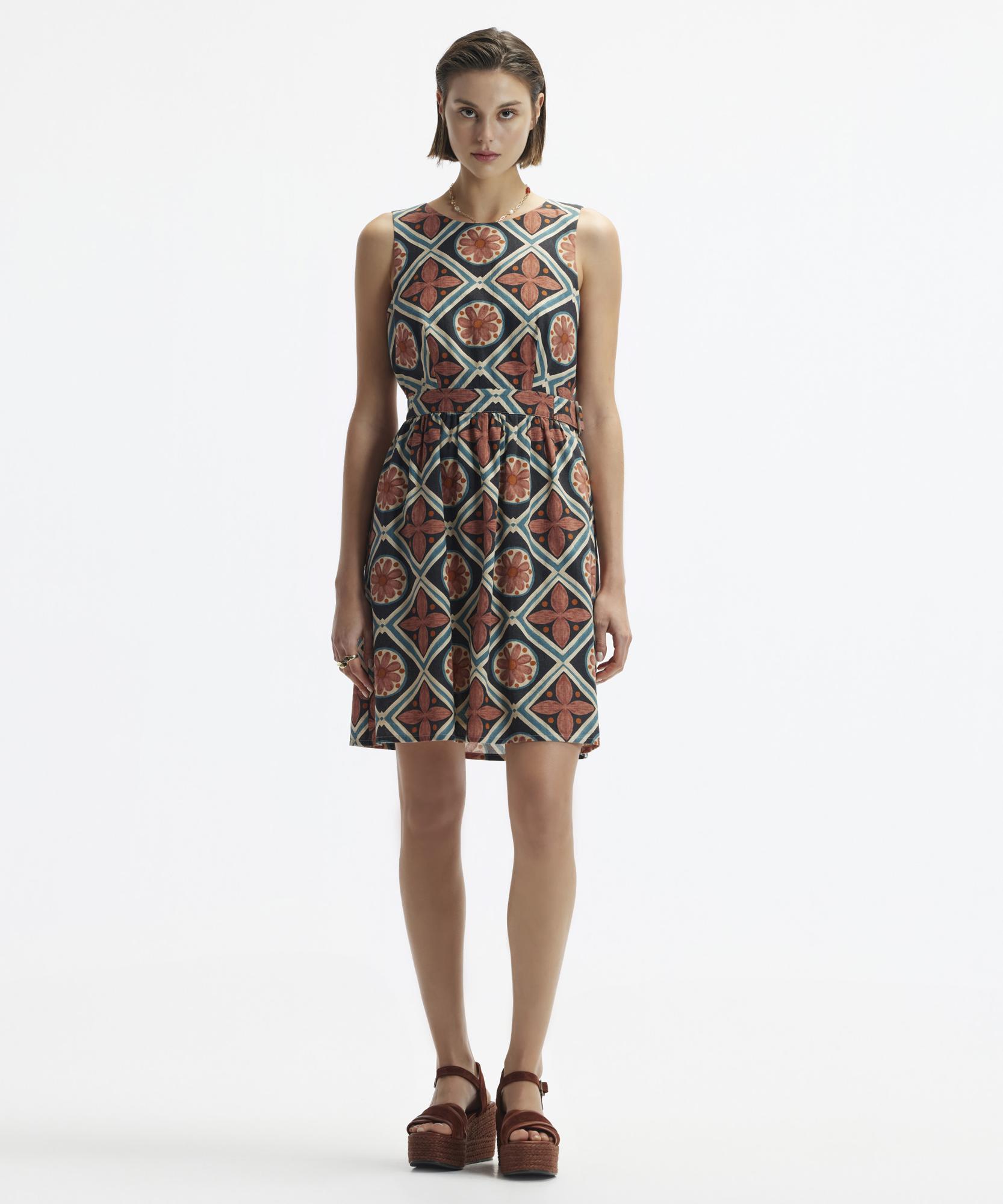 Çiçek desenleri ile neşeli ve canlı bir tarz sunan bu kolsuz elbise, günlük kullanım için ideal bir seçenek olmaya aday. İster piknikte ister bir brunchta, bu rahat parçayı spor ayakkabılar ve bir denim ceketle kombinleyerek rahat ve stil sahibi bir görünüm elde edebilirsiniz.