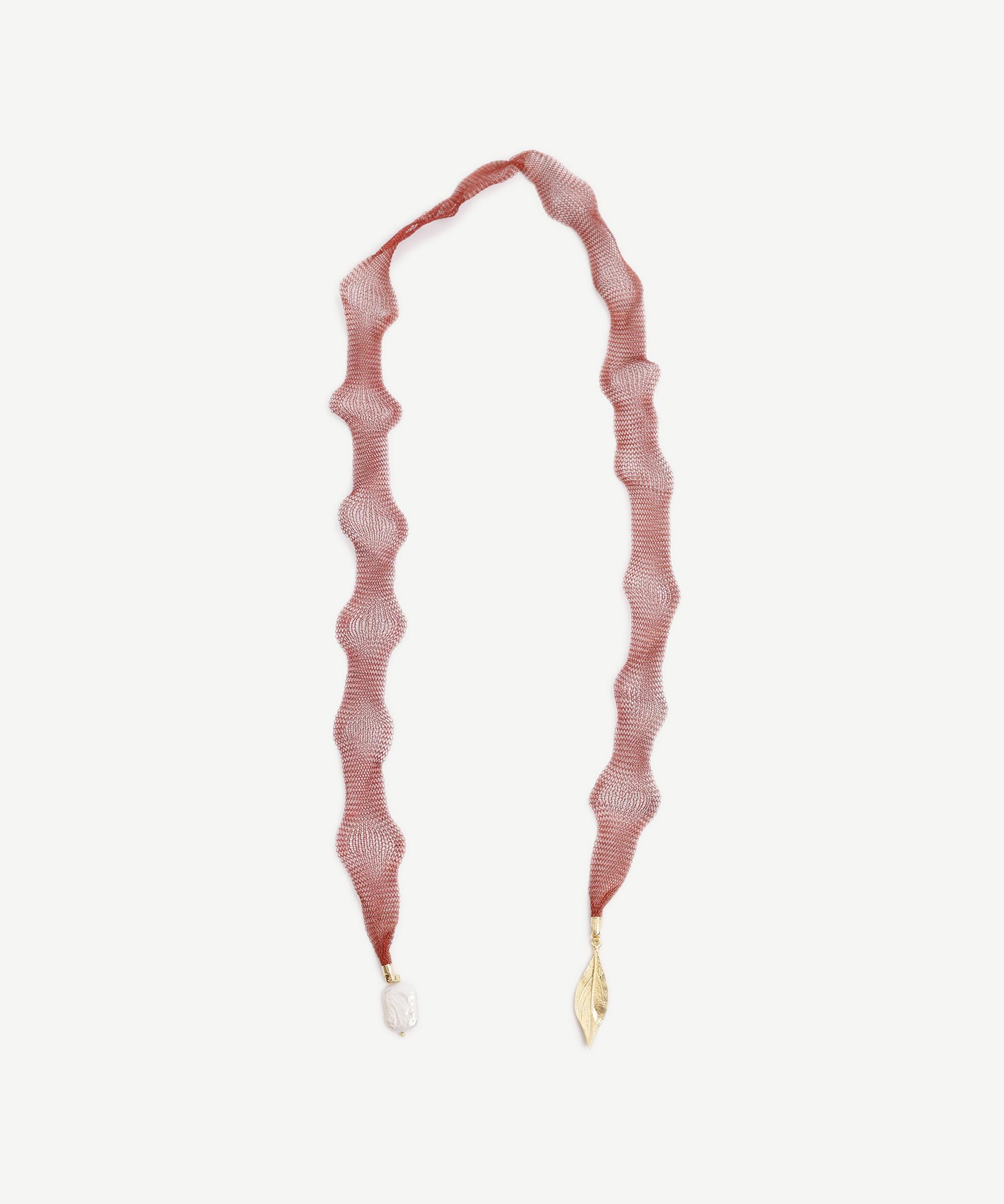 Dalgalı formda tasarlanmış şerit yapısı ve uç detaylarıyla öne çıkan bu kolye, stiline sanatsal bir dokunuş katmak isteyenler için ideal. Yumuşak dokulu trikolarla veya boğazlı kazaklarla kombinlendiğinde sezonun ruhunu yansıtır. Minimal ama dikkat çekici tasarımıyla tek parça şıklık yaratır.