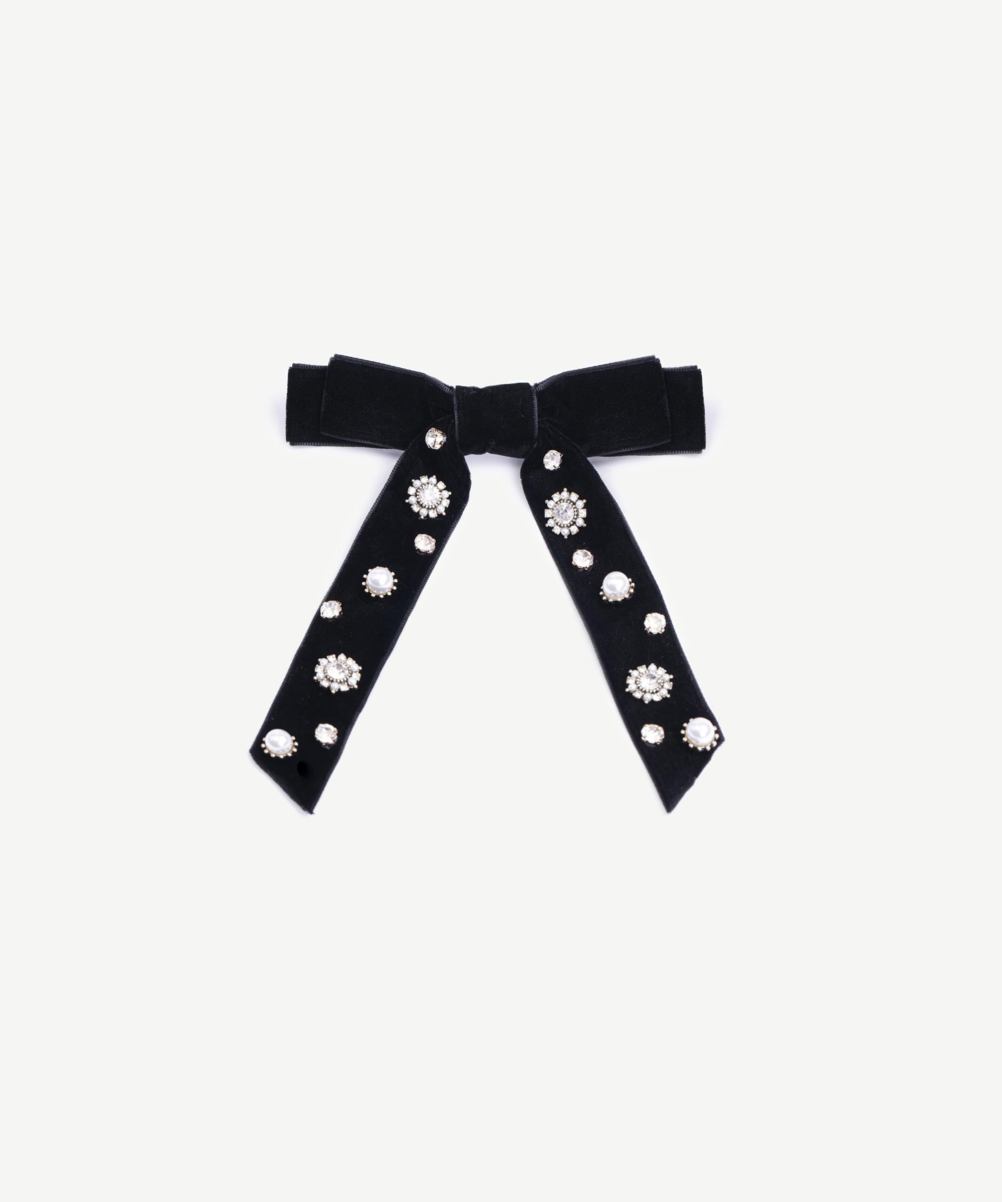 Kadife dokusu ve taş detaylarıyla dikkat çeken bu fiyonk toka, klasik ve zarif bir görünüm sunar. Elbiseler veya gömlek yaka üstlerle kolayca uyum sağlar.