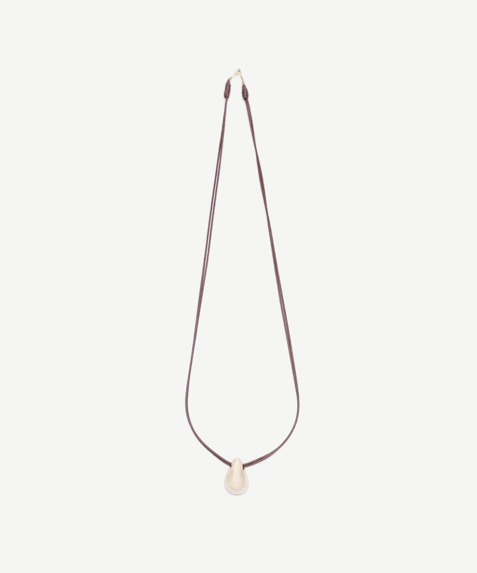 Organik formlu metal detayla tamamlanan bu kolye, sade şıklığı ön planda tutanlar için ideal bir parça. Ayarlanabilir ip formu sayesinde farklı boylarda kullanılabilir ve özellikle boğazlı kazaklar ya da dökümlü gömleklerle uyum içinde kombinlenebilir.