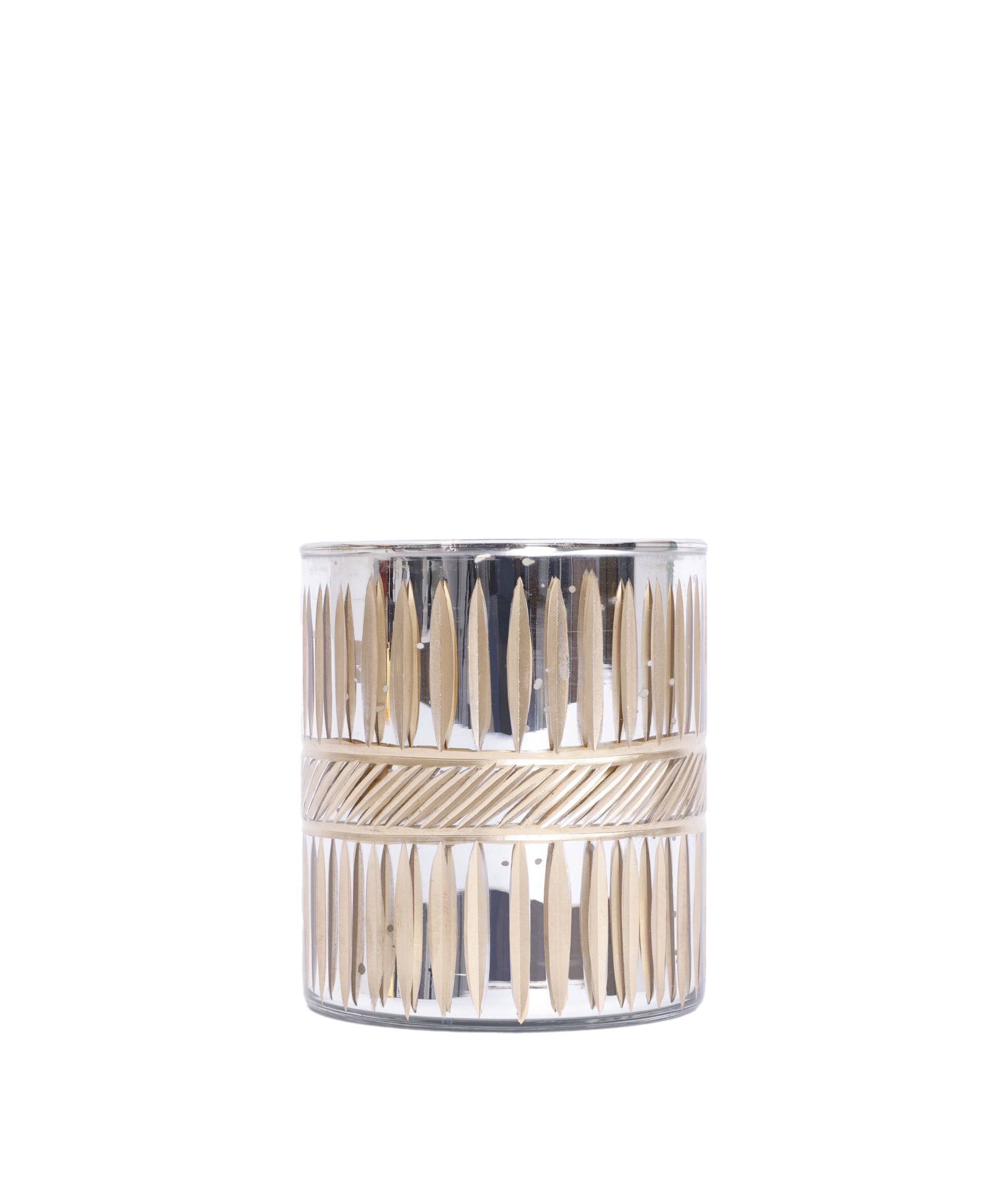 Modern ve zarif tasarımıyla dikkat çeken bu cam mum, üzerindeki altın tonlu desenleriyle göz alıcı bir dekoratif obje haline geliyor. Işığı yansıtan yüzeyi sayesinde bulunduğu ortama ışıltılı bir ambiyans katıyor. Özellikle akşam yemekleri, dinlenme köşeleri ya da özel davetlerde şıklığı tamamlıyor. Hem estetik hem işlevsel bir dokunuş arayanlar için ideal bir seçim sunuyor.