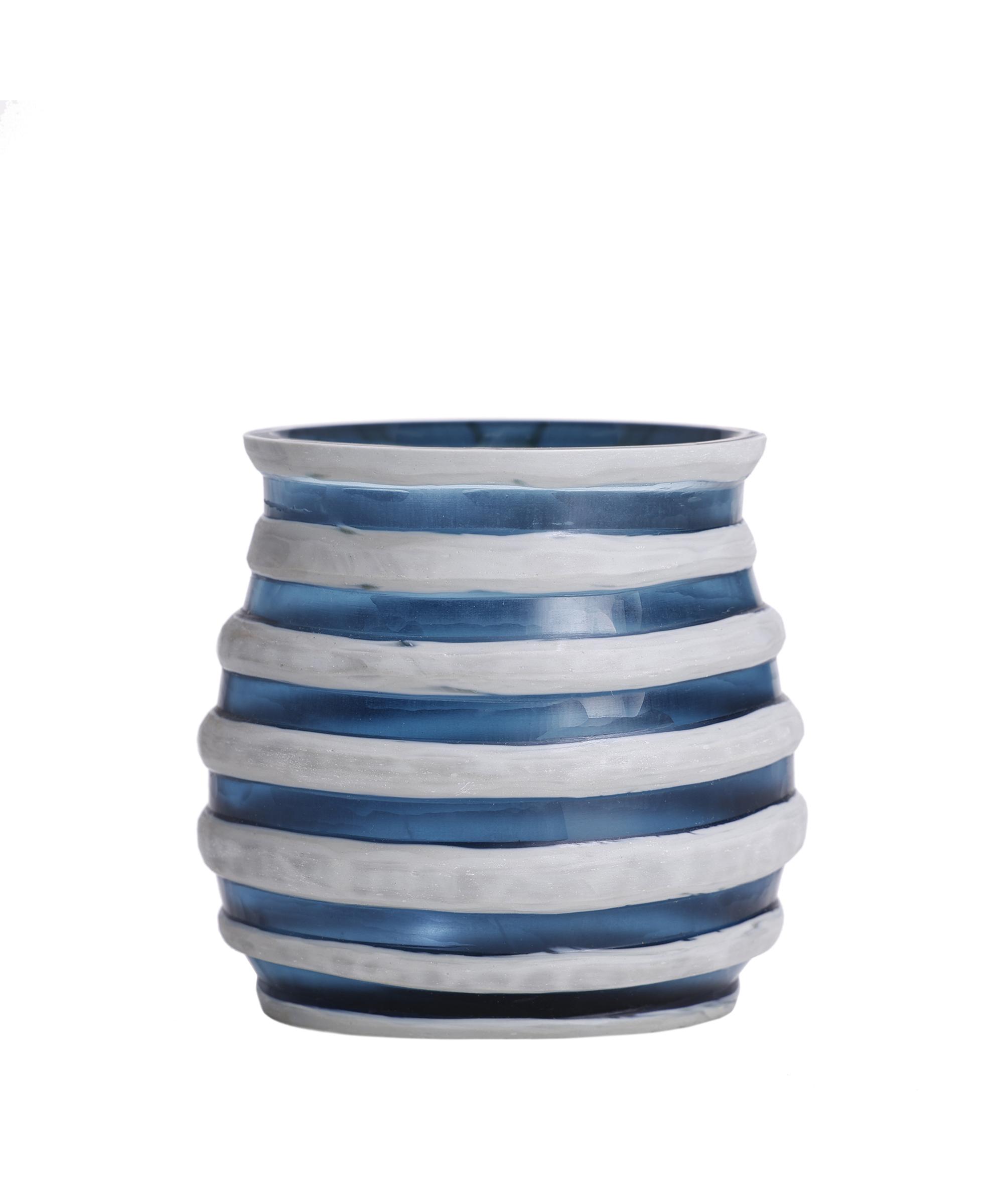 Göz alıcı renk geçişleriyle bu mumluk, enerjik ve canlı bir dokunuş sunuyor. Mavi tonlarındaki pürüzsüz yüzeyi, odanızda denizin huzurunu ve serinliğini hissettirecek bir ambiyans yaratır.