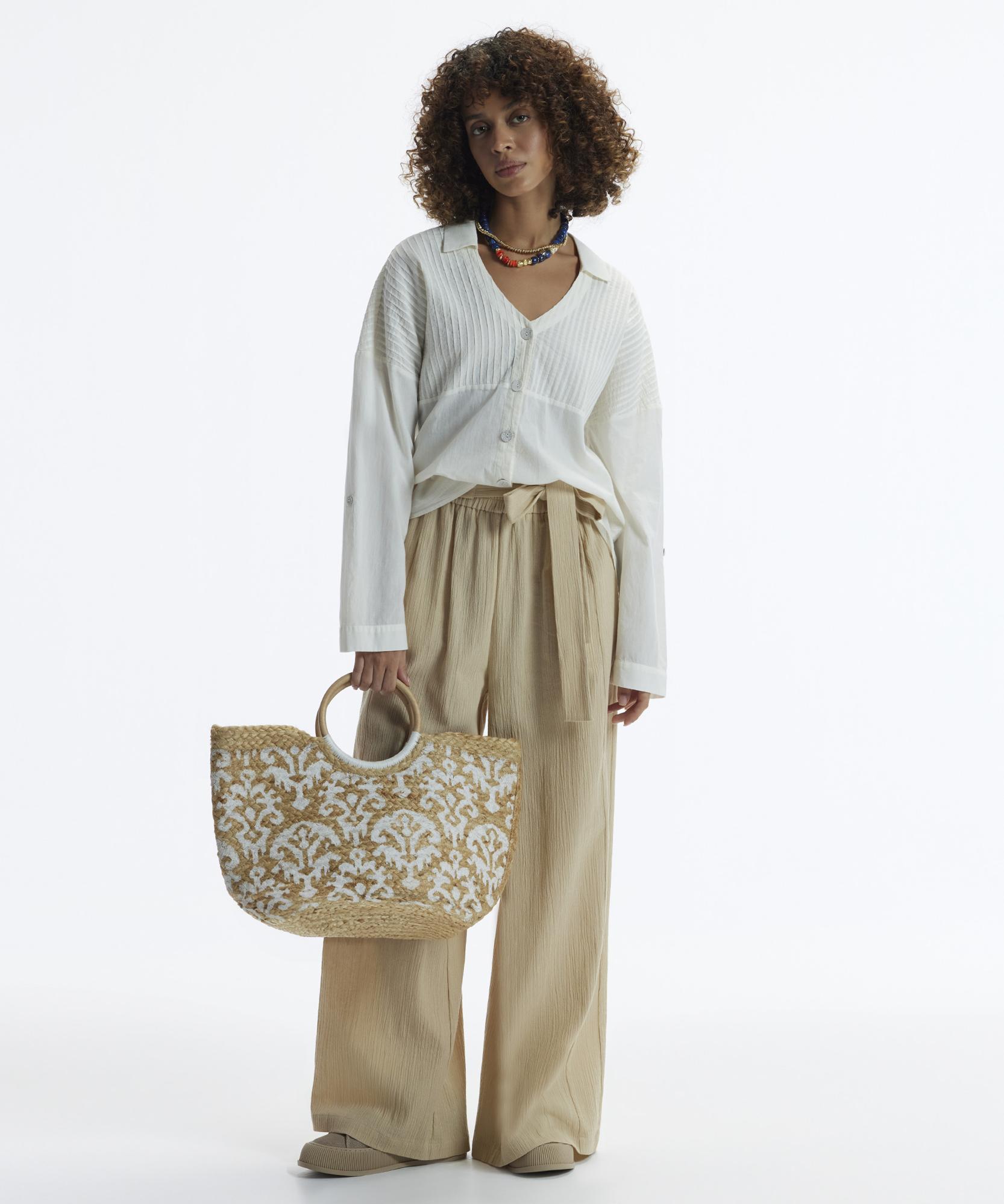 Pliseli detaylar ve düğmeli ön kısmı ile bu gömlek, tarzınıza sofistike bir zarafet sunuyor. Vücudu sararak şık bir duruş sağlayan yapısı, her türlü alt giyimle uyum sağlayacak şekilde tasarlandı. Hafif ve hava alan kumaşı ile stilinizde tüm gün konfor sağlarken hareket özgürlüğünüzü kısıtlamaz. Bu parçayı düz kesim pantolonlar veya eteklerle kombinleyerek şık bir iş kıyafeti elde edebilirsiniz.
