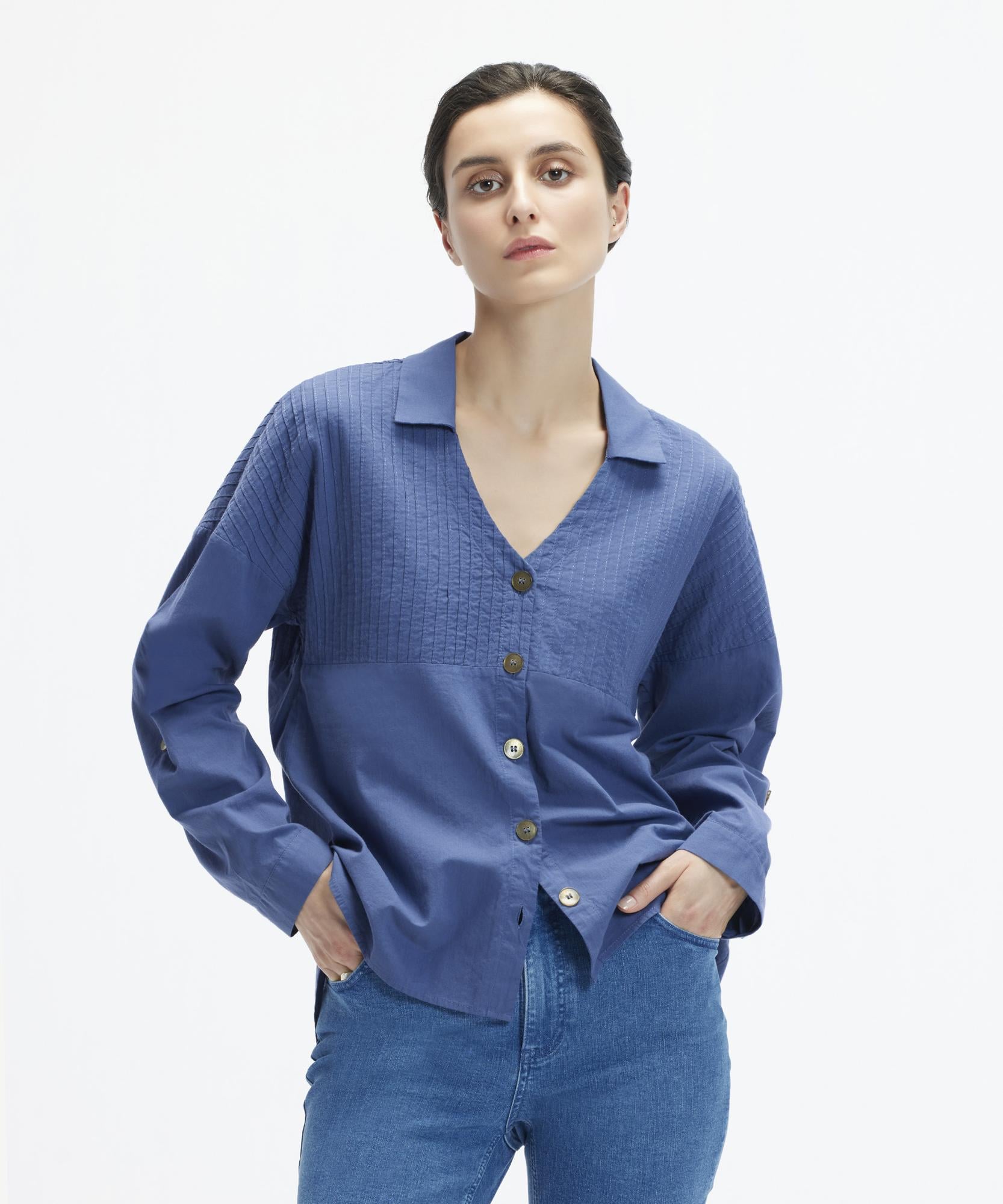 Pliseli detaylar ve düğmeli ön kısmı ile bu gömlek, tarzınıza sofistike bir zarafet sunuyor. Vücudu sararak şık bir duruş sağlayan yapısı, her türlü alt giyimle uyum sağlayacak şekilde tasarlandı. Hafif ve hava alan kumaşı ile stilinizde tüm gün konfor sağlarken hareket özgürlüğünüzü kısıtlamaz. Bu parçayı düz kesim pantolonlar veya eteklerle kombinleyerek şık bir iş kıyafeti elde edebilirsiniz.