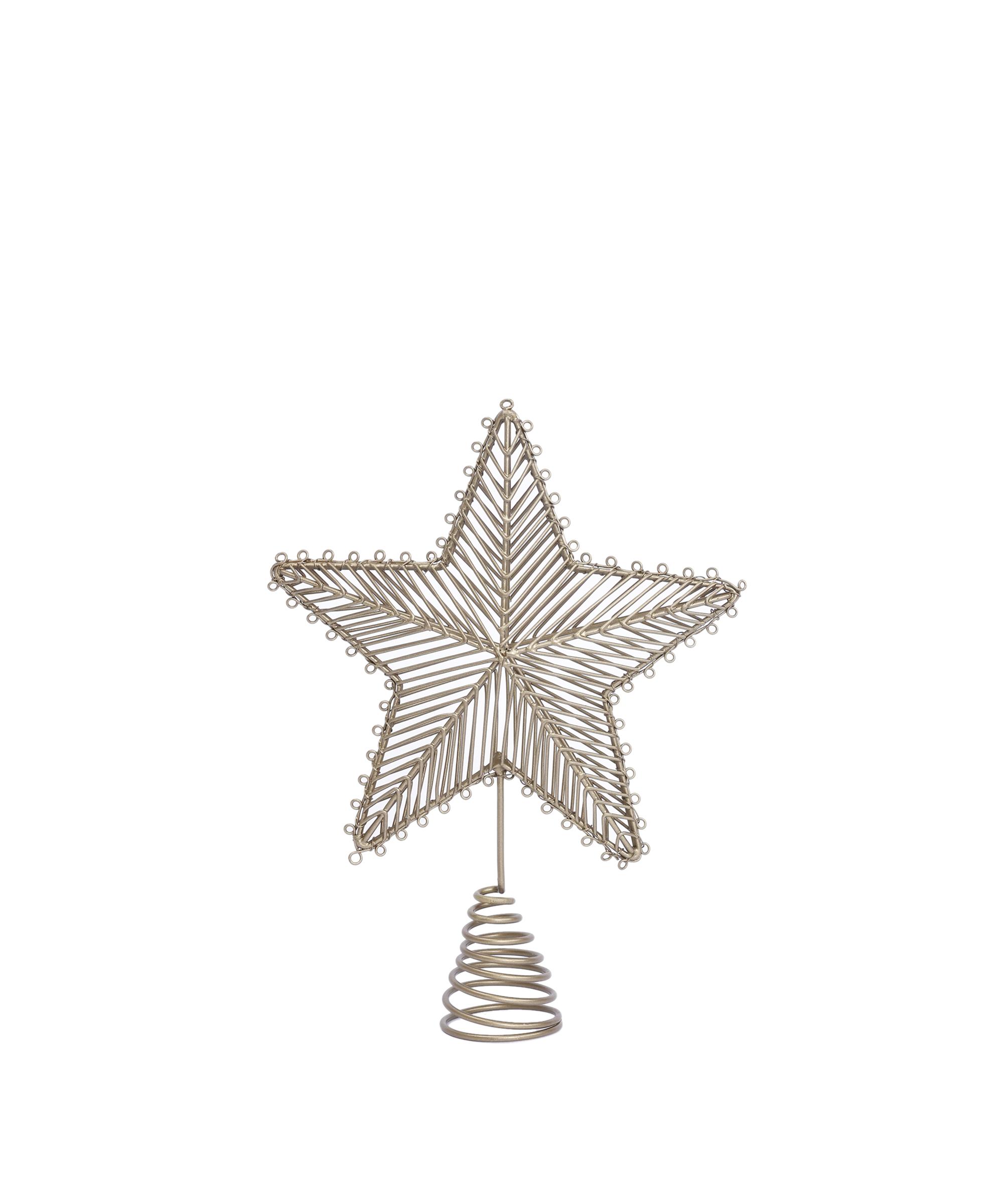 Tel formuyla şekillendirilmiş bu yıldız figürü, yılbaşı ağacınızın tepesine zarif bir dokunuş katmak için özel olarak tasarlanıyor. Spiral tabanı sayesinde ağacın ucuna kolayca yerleşiyor ve dengede kalıyor. Metalik yapısı hem klasik hem de modern süslemelerle uyum sağlayarak dekorasyonu tamamlıyor. Yeni yıl ruhunu yansıtan bu parça, kutlamalarınıza ışıltı ve şıklık katıyor.
