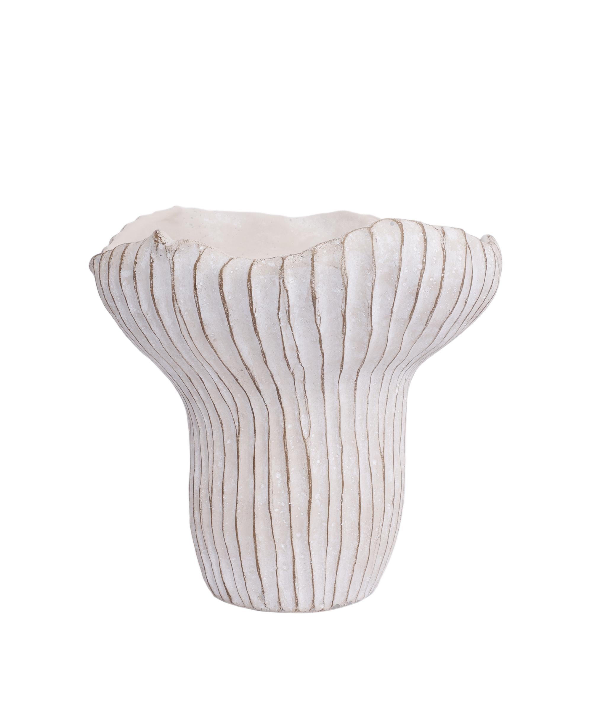 Heykelsi formu ve doğal dokuya sahip yüzeyiyle bu dekoratif obje, bulunduğu ortama zarif bir karakter katıyor. El işçiliğini andıran çizgileriyle özgün bir görünüm sunuyor. Tek başına sergilendiğinde bile dikkat çeken bu parça, raf ve sehpa üzerlerinde estetik bir vurgu yaratıyor. Kış mevsiminde mumlar ve yumuşak dokulu tekstillerle kombinlendiğinde sıcak ve davetkar bir ambiyans oluşturuyor.