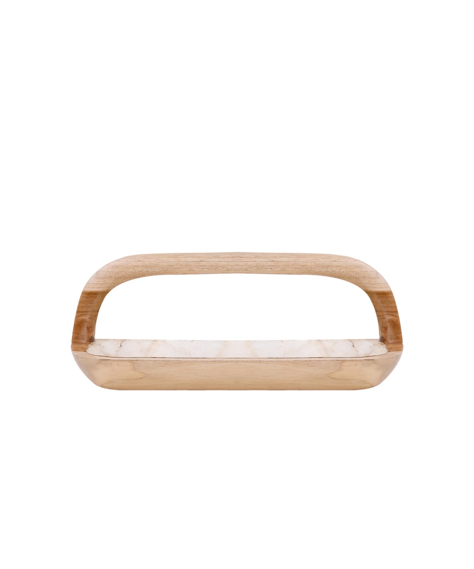 Ahşap ve parlak yüzey detaylarıyla dikkat çeken bu obje, hem şık hem de kullanışlı bir sunum aksesuarıdır. Hafif ve ergonomik tasarımı sayesinde günlük kullanım ve dekoratif amaçlar için idealdir.