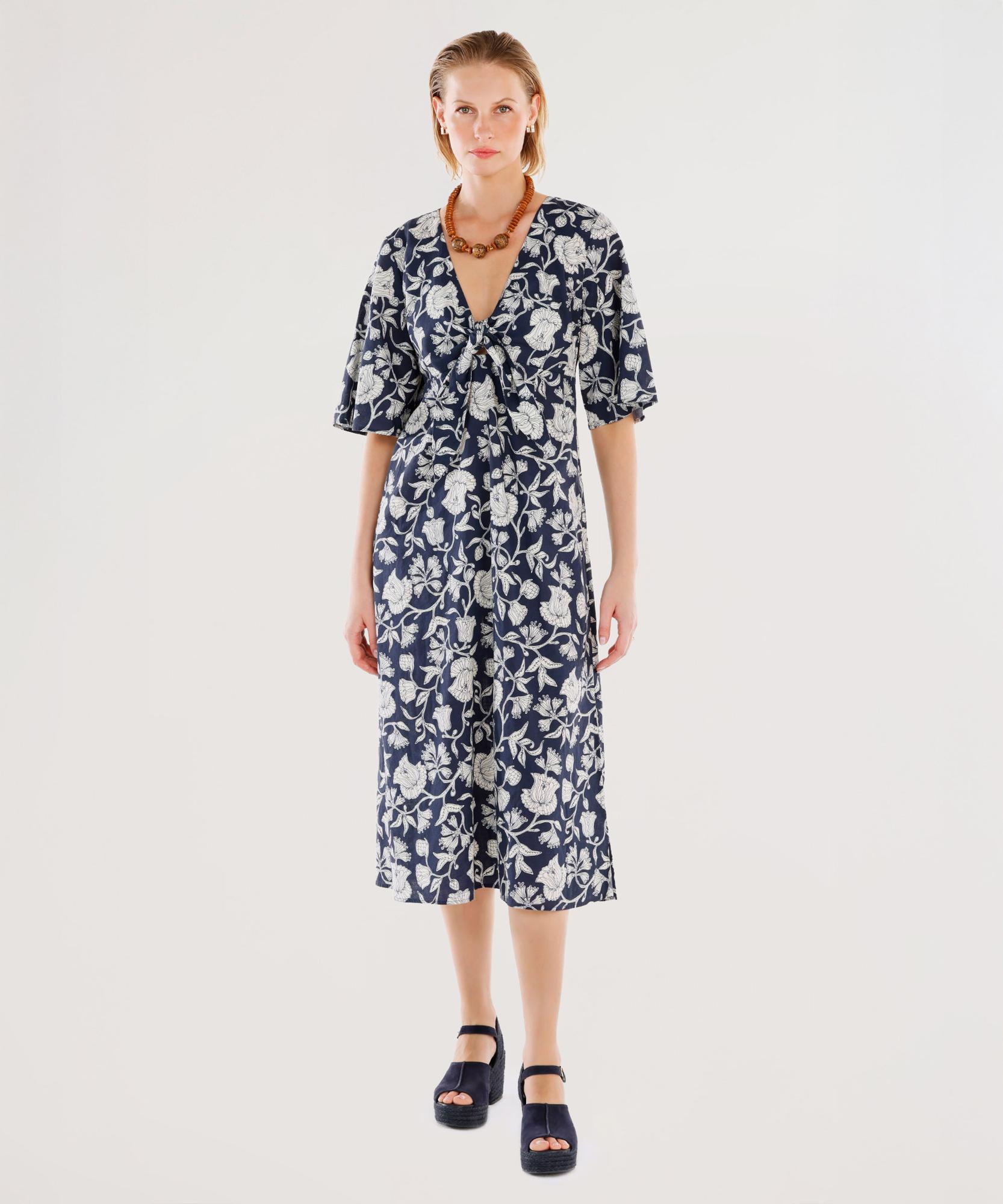 YARGICI Önü Bağlama Detaylı Kısa Kollu Midi Boy Elbise