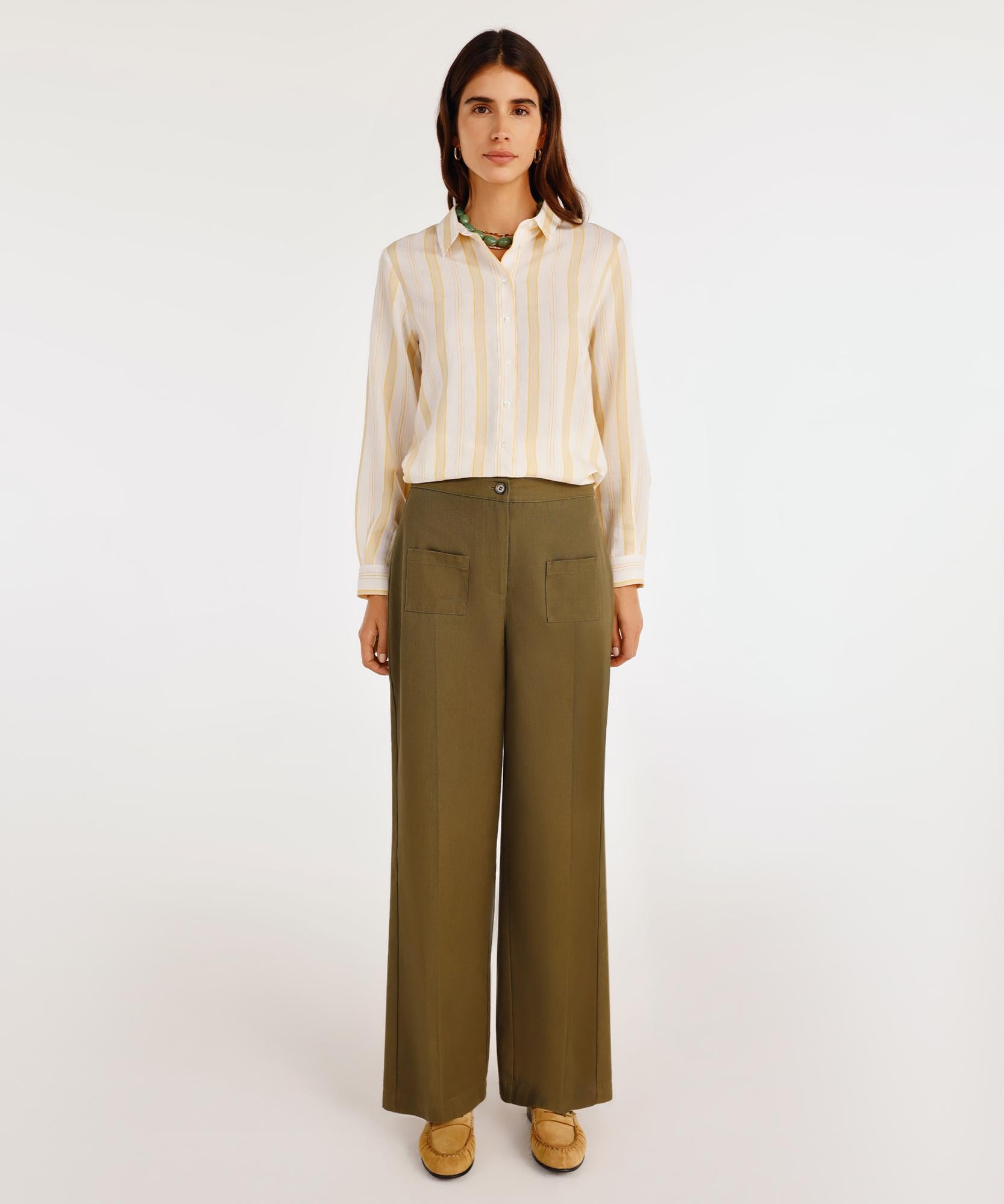 Modern ve zamansız bir tasarıma sahip olan bu geniş paça pantolon, şık duruşuyla her ortamda fark yaratır. Ön kısmındaki cep detayları, tasarıma hareket katar. Hafif ve nefes alabilen kumaşı sayesinde gün boyu konfor sunar. Hem günlük hem de ofis kombinlerinde rahatlıkla kullanılabilir.