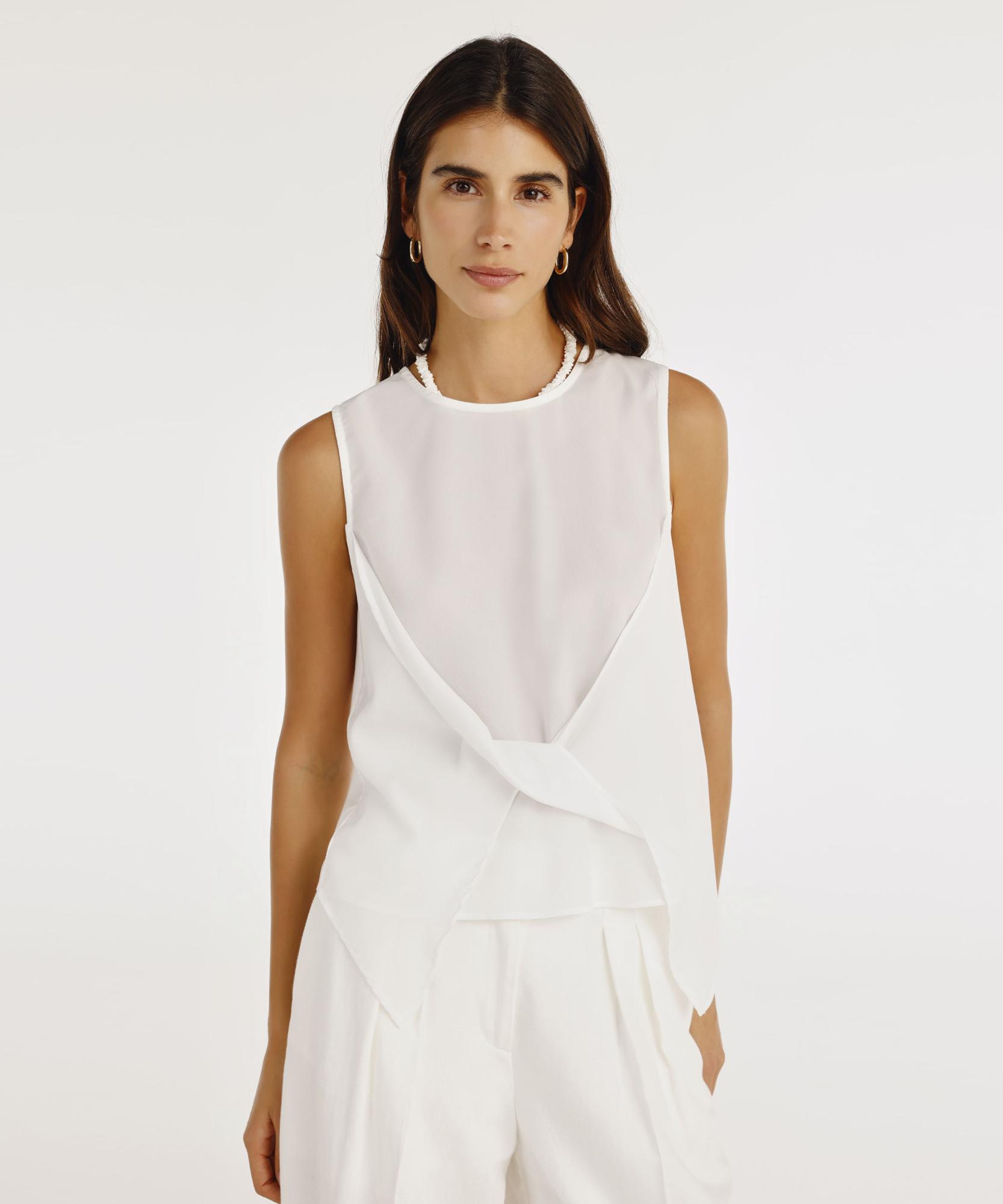 Ön düğüm detayı ile modern bir hava katan kolsuz bluz, şık ve sade tasarımıyla dikkat çeker. Hafif ve akıcı kumaşı sayesinde gün boyu konfor sunarken, farklı kombinlerle kolayca uyum sağlar. Günlük ve özel gün kombinleri için ideal bir parçadır.