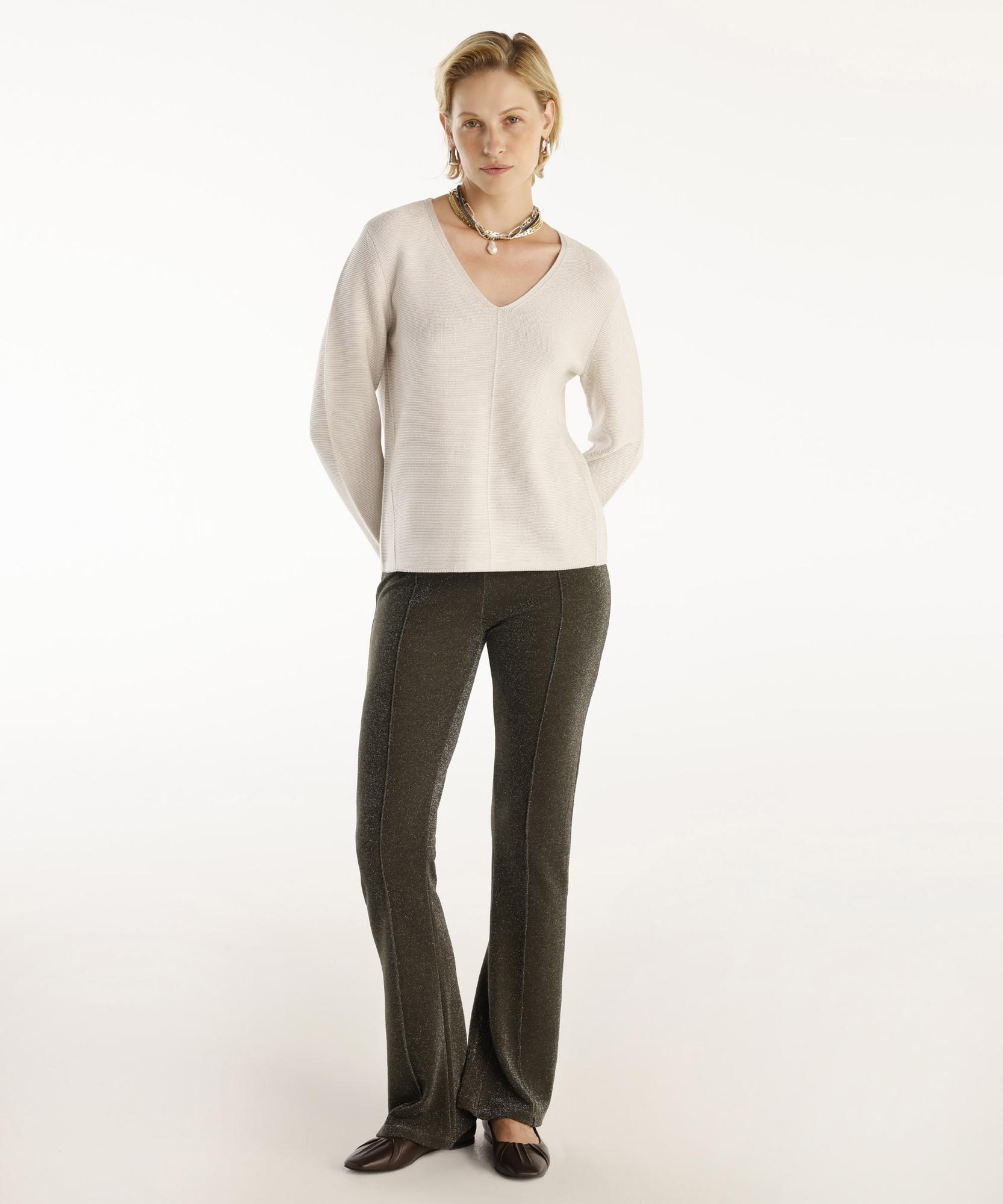 Bu pantolon, vücut hatlarını vurgulayan fit kesimi ve zarif detaylarıyla dikkat çekiyor. Parlak dokusu, pantolonu özel davetlerden günlük giyime kadar geniş bir yelpazede kullanılabilir hale getiriyor. Şık bir gömlek ya da bluzla kombinlendiğinde, sofistike bir görünüm elde edebilirsiniz.