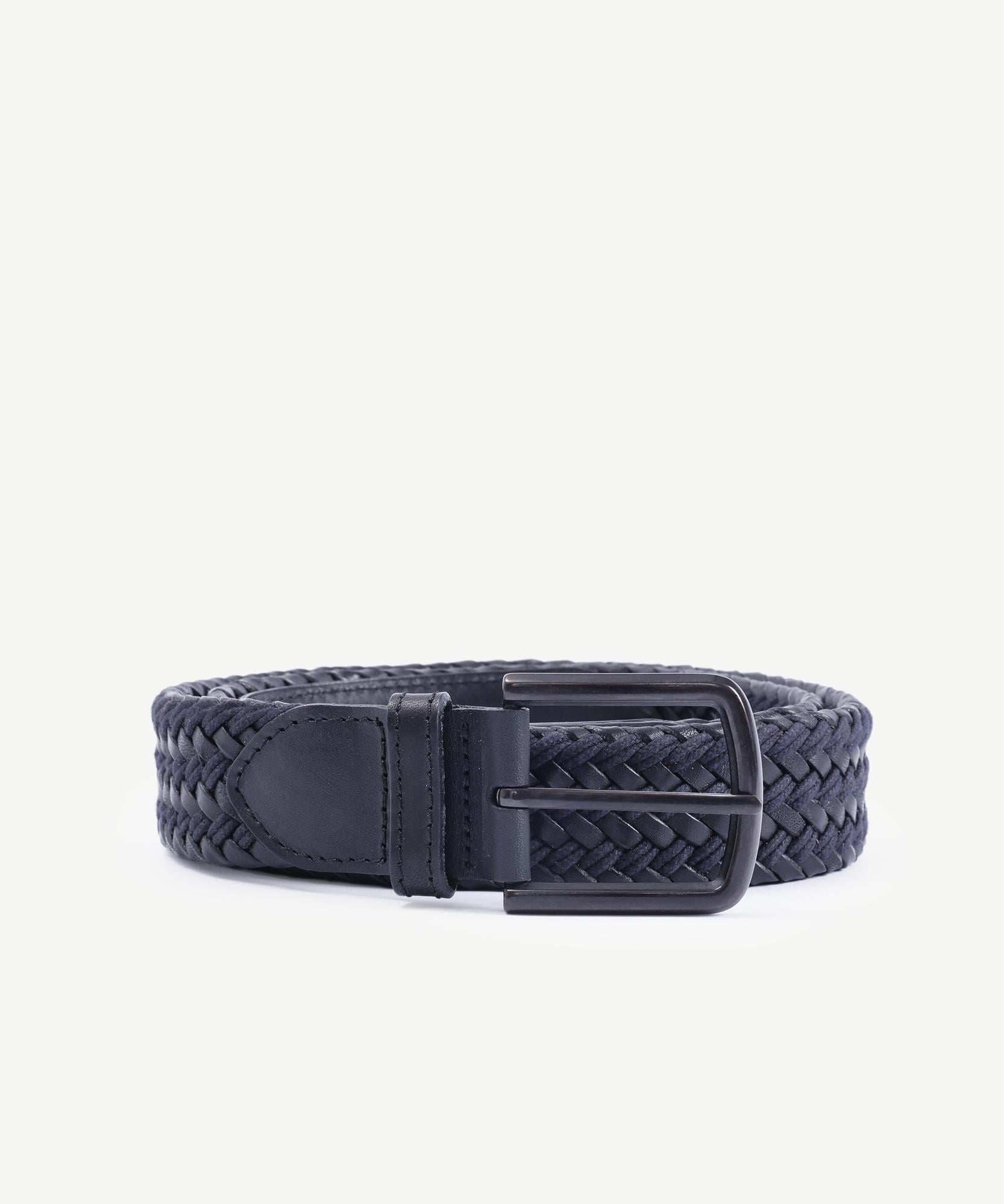 Koyu tonlu örgü yapısı ve zarif metal tokasıyla dikkat çeken bu kemer, şıklığı sade çizgilerle sunuyor. Günlük kombinlere kolayca uyum sağlar ve özellikle keten pantolonlarla uyumlu bir tercih olur.