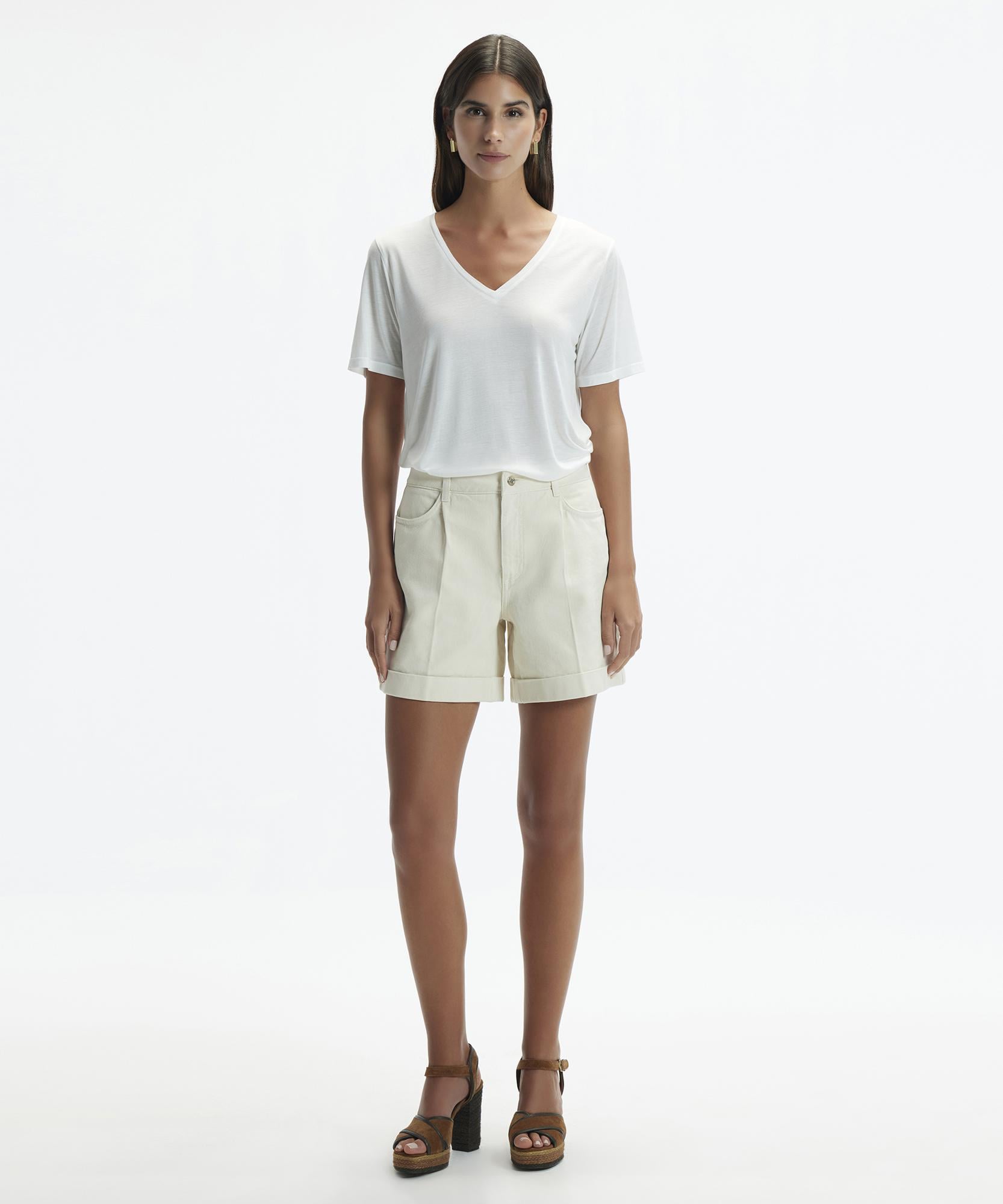 Yüksek bel kesimi ve sade tasarımıyla bu şort, zarif bir şıklık sunuyor. Kumaşının hafifliği, sıcak günlerde serinlik hissi verirken, düğme detayı şık bir dokunuş ekliyor. Bir keten gömlek ve düz taban sandaletlerle mükemmel bir yaz kombini oluşturabilirsiniz.