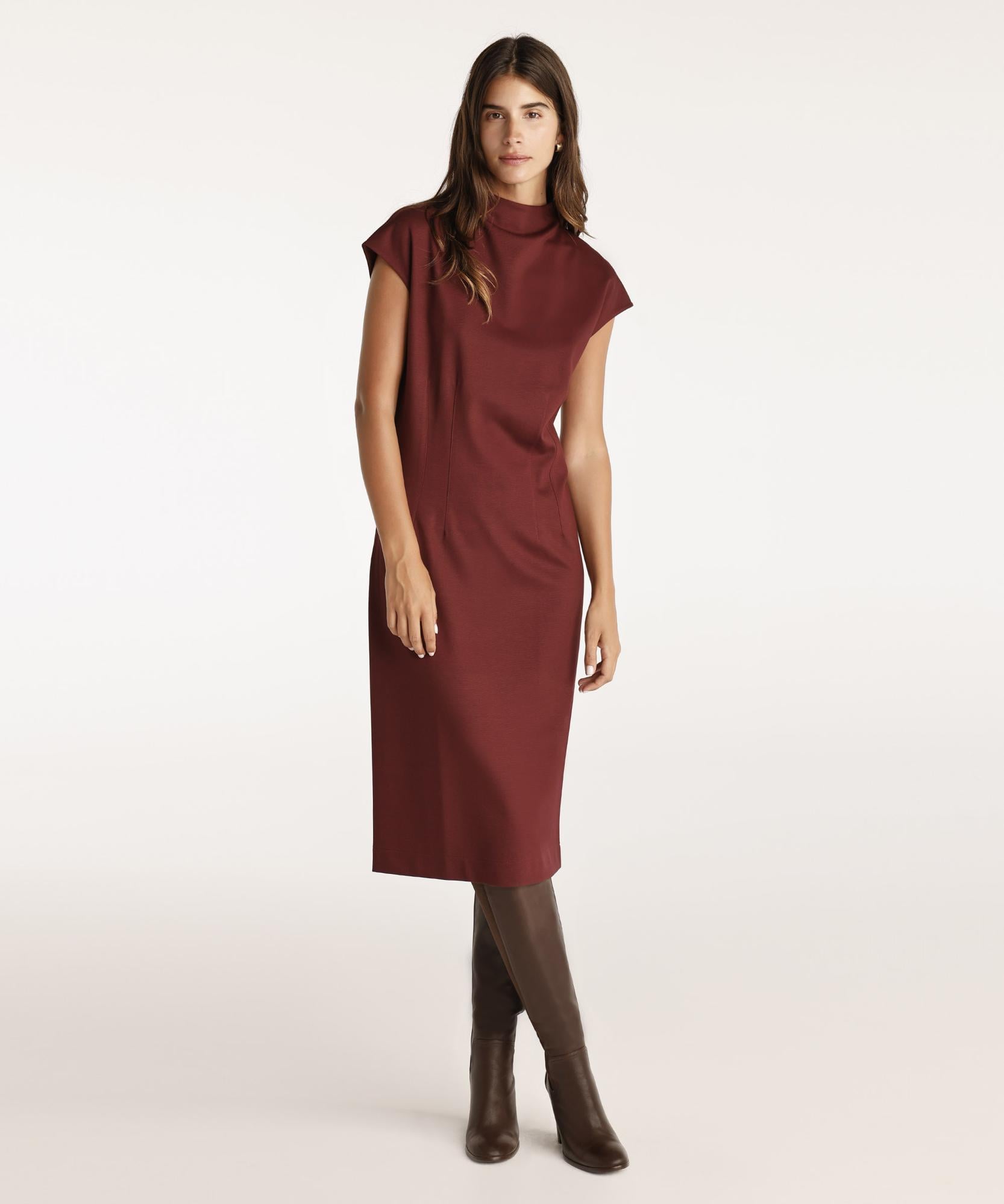 Bu zarif elbise, sade tasarımıyla minimal şıklık sunar. Düz kesimi ve yüksek yakası, elbiseye modern ve sofistike bir hava katıyor. Uzun çizmeler ve ince aksesuarlarla kombinleyerek, her mevsim şık ve zarif bir görünüm elde edebilirsiniz.