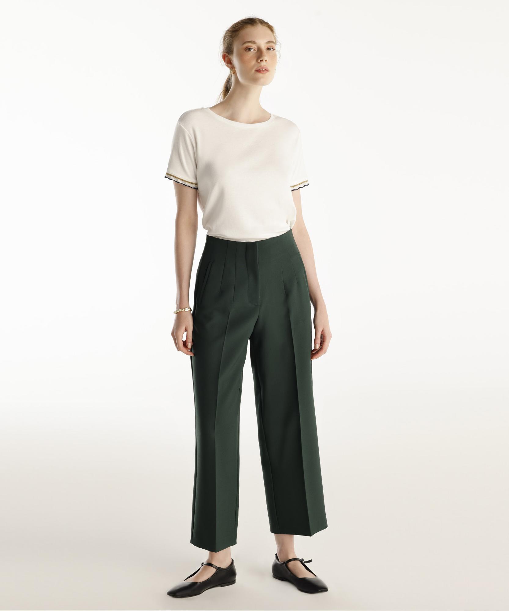 Bu yüksek bel, bol kesim pantolon, rahatlık ve şıklığı bir arada sunar. Hafif dökümlü yapısı sayesinde gün boyu konfor sağlar ve stil sahibi bir görünüm oluşturur. Kısa bluzlar veya gömleklerle kombinlenerek modern ve zarif bir görünüm elde edilebilir.