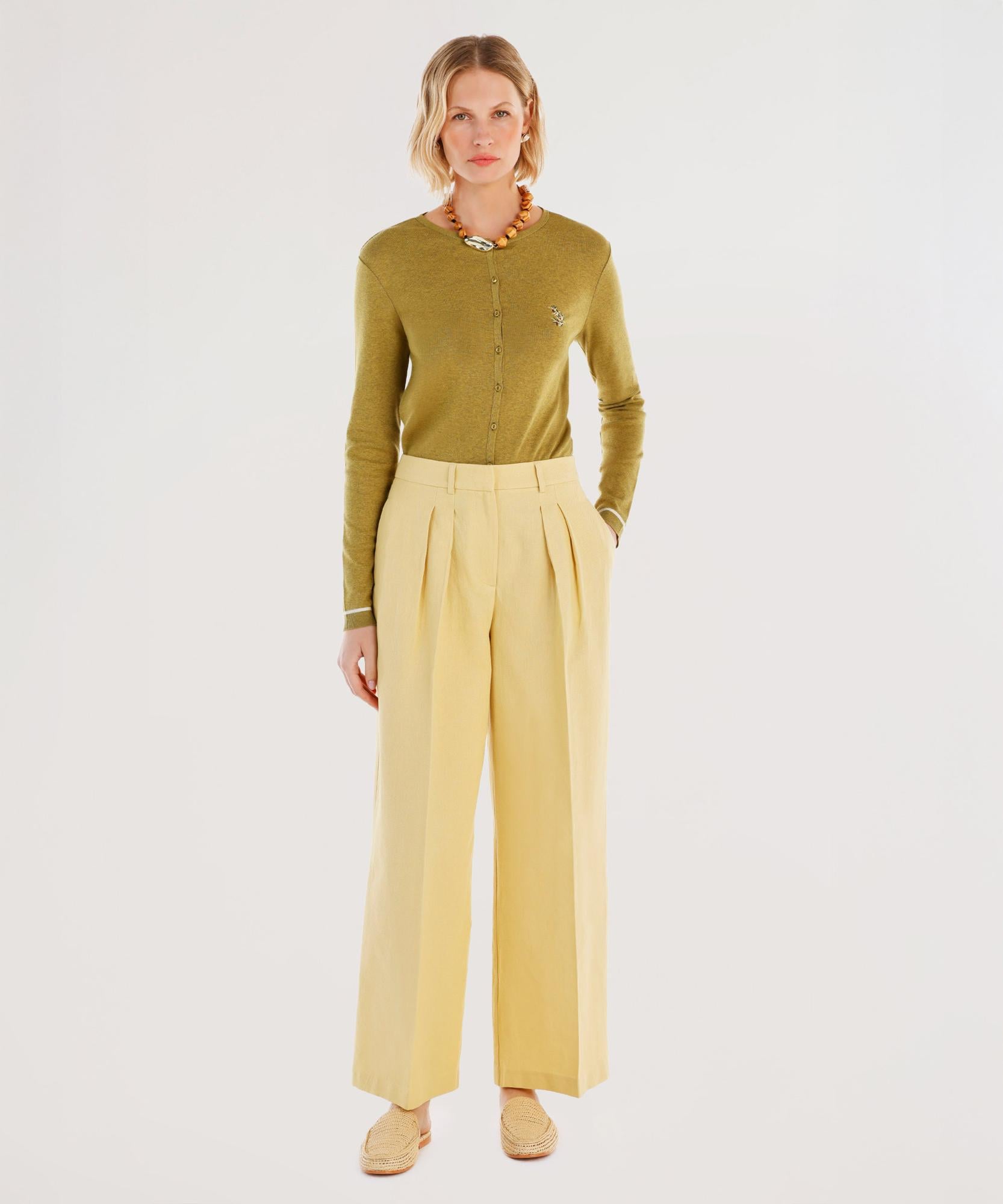Bağlama detaylı beli ve salaş kesimiyle şık bir görünüm sunan bu pantolon, hafif kumaşı sayesinde gün boyu konfor sağlar. Rahat ve şık bir tarz yakalamak isteyenler için mükemmel bir seçenektir.