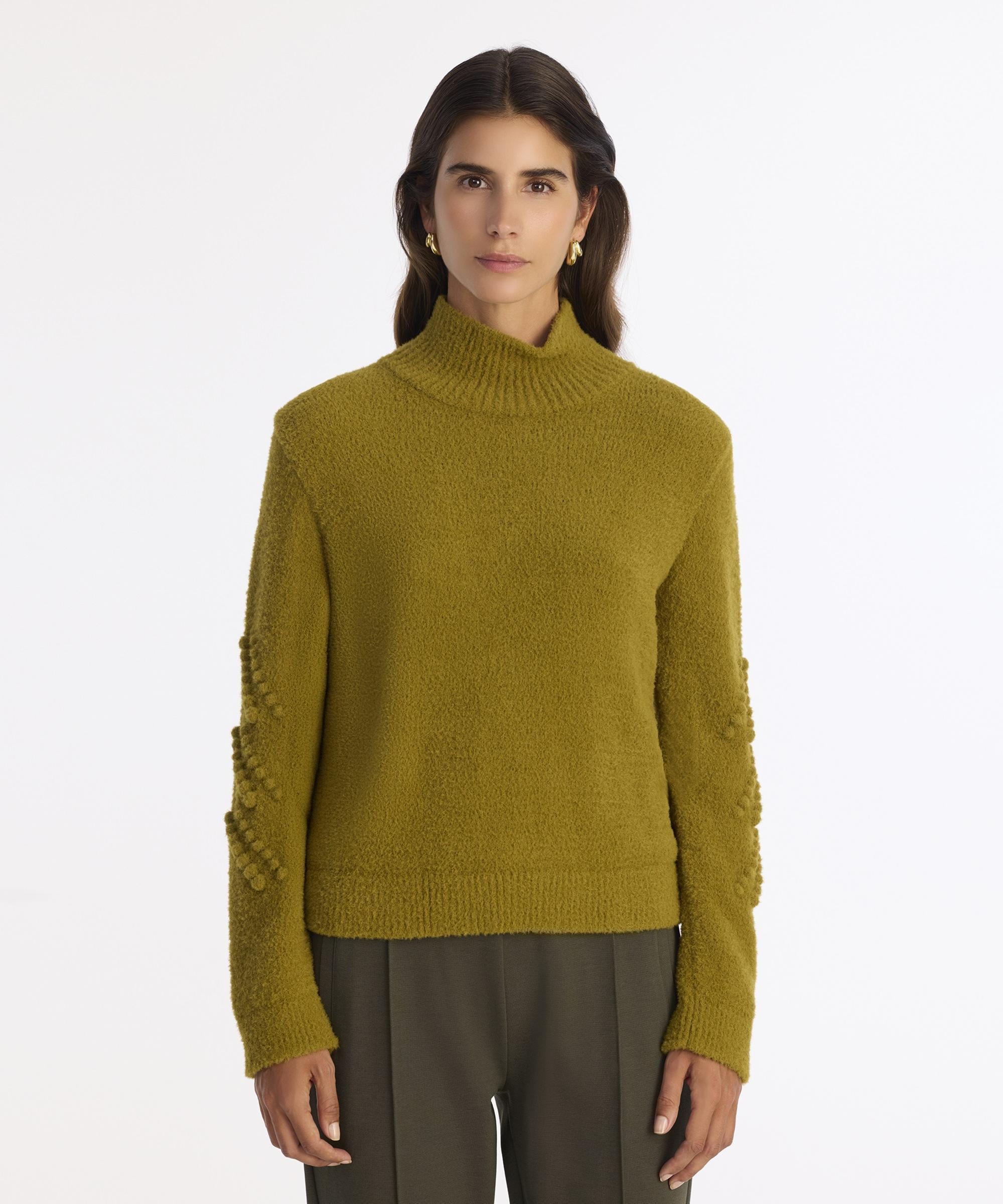 Yüksek yakası ve yumuşak dokusuyla öne çıkan bu triko kazak, soğuk kış günlerinde sıcacık bir konfor sunuyor. Kollarındaki zarif kabartma detayları, sade şıklığı hareketlendirerek stilinize özgünlük katıyor. Günlük kullanımda jean pantolonlarla rahatça kombinlenebilir. Uzun kaban ve botlarla tamamlandığında kışa özel şık bir görünüm elde edilebilir.