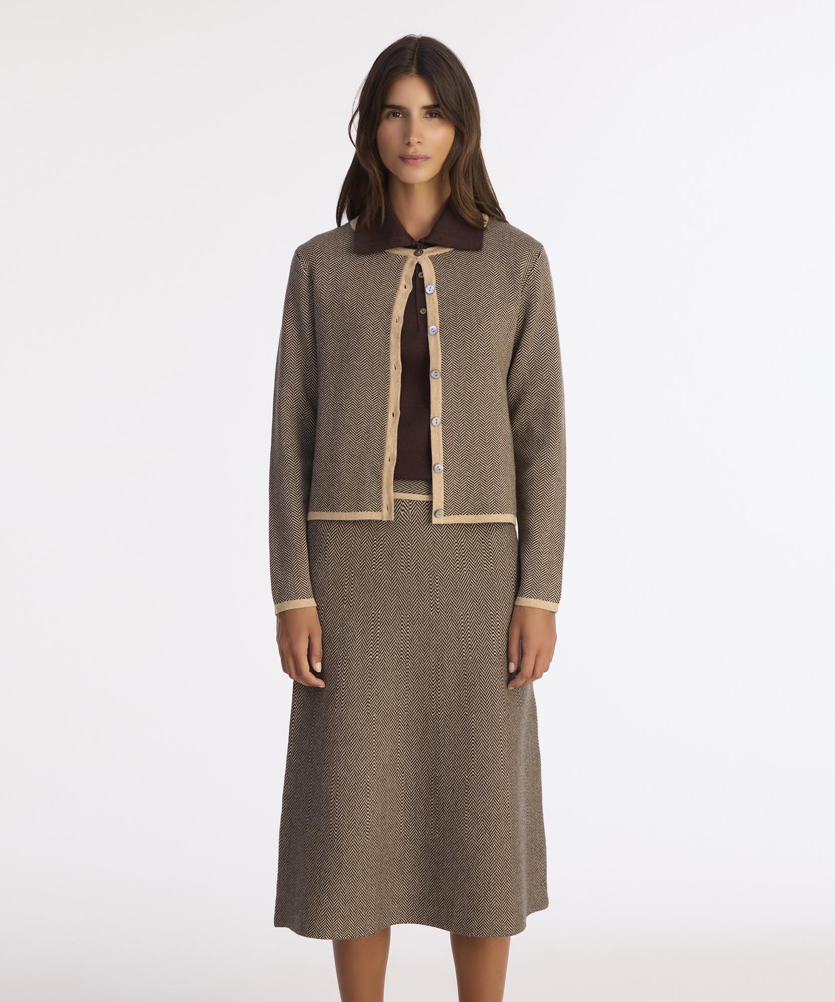 Zikzak desenli dokusuyla öne çıkan bu triko hırka, düğme detaylarıyla klasik ve zarif bir duruş sunuyor. Kontrast renkli şeritler, tasarıma hoş bir denge katarak dikkat çekici bir görünüm yaratıyor. Kış aylarında yüksek bel kumaş pantolonlarla veya midi eteklerle rahatlıkla kombinlenebilir. Soğuk günlerde şıklığınızdan ödün vermeden sıcak kalmanızı sağlar.