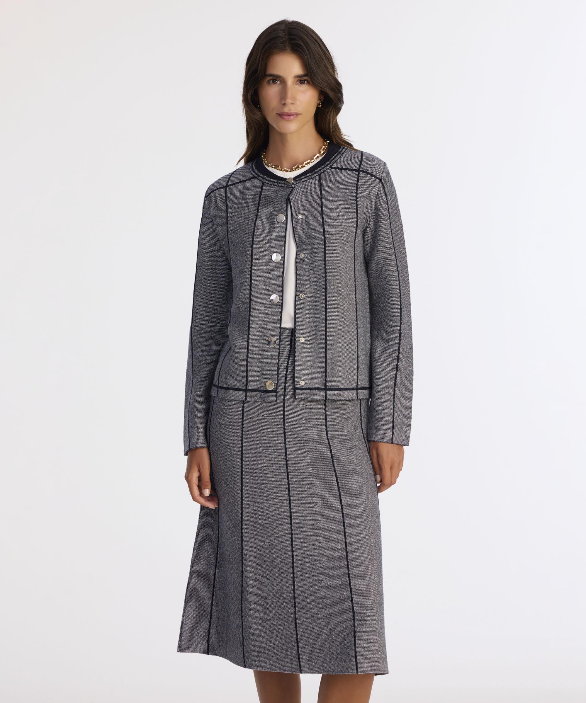 Dikey çizgili tasarımıyla dikkat çeken bu triko ceket, zarif düğme detaylarıyla şıklığı ön plana çıkarıyor. Yumuşak dokusuyla kış aylarında sıcak tutarken hafif yapısıyla gün boyu konfor sağlar. Ofis kombinlerinden günlük dış giyime kadar geniş bir kullanım alanı sunar. Dar paça pantolon ve kısa topuklu botlarla tamamlanarak kış stilinizi modern bir dokunuşla zenginleştirebilir.