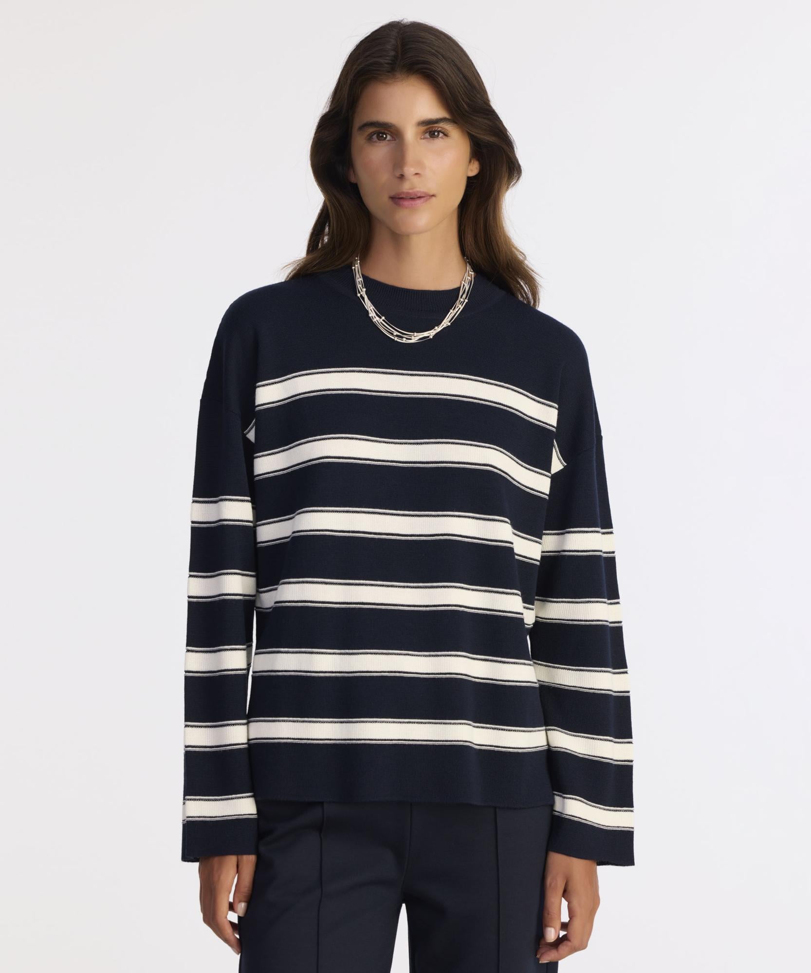 Yatay çizgili bu triko kazak, klasik ve sportif tarzı bir araya getirerek günlük kombinlerinizde şıklığı yakalamanıza yardımcı oluyor. Rahat kesimi sayesinde gün boyu konfor sunarken, desen detaylarıyla hareketli bir görünüm sağlıyor. Kış mevsiminde jean pantolon ve kısa botlarla tamamlayabileceğiniz modern bir stil sunar. Soğuk günlerde içine gömlek giyerek katmanlı bir görünüm de elde edebilirsiniz.