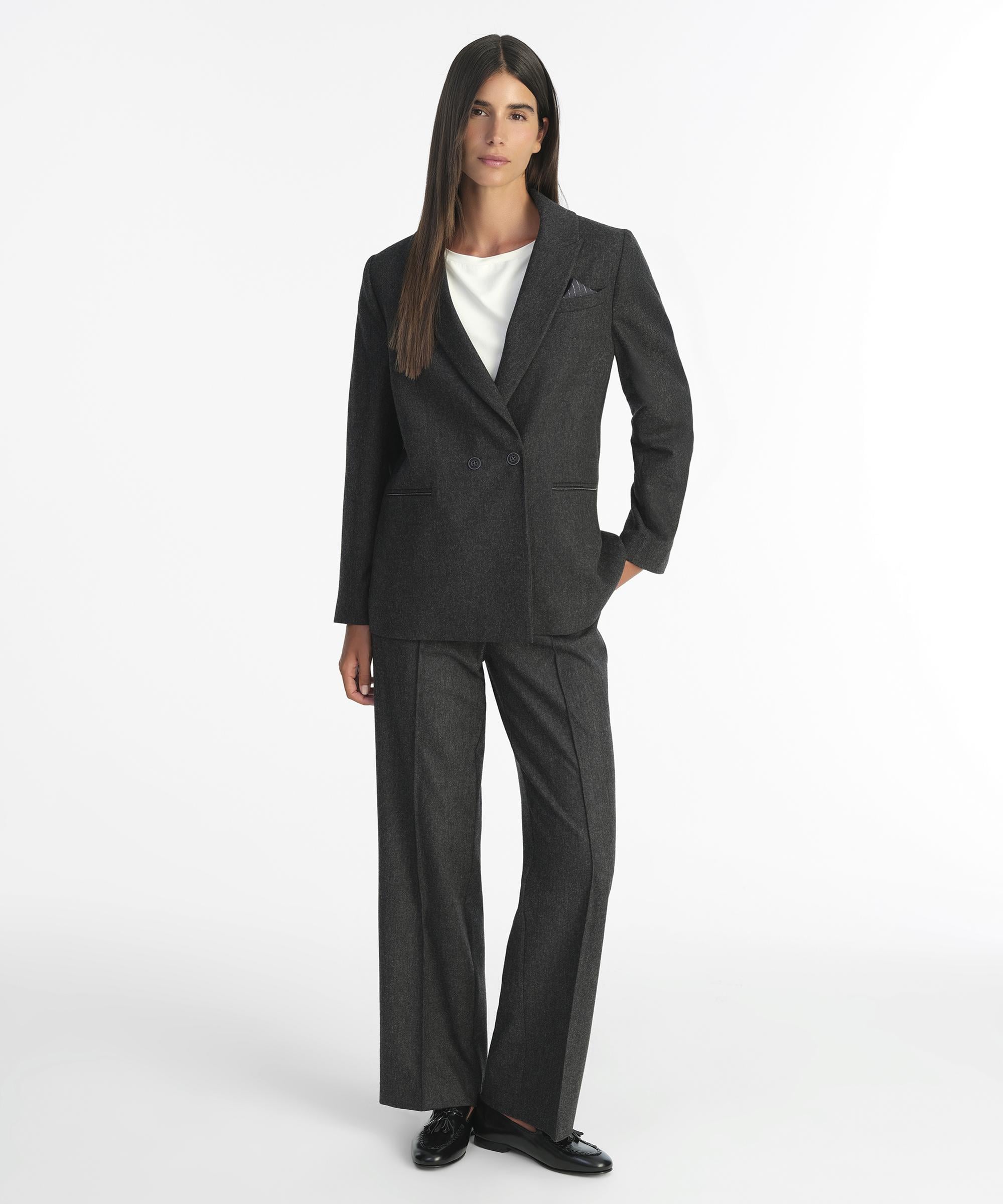 Klasik kesimiyle dikkat çeken bu ceket, modern detaylarla zenginleşiyor ve gardırobunuzun vazgeçilmez parçası olmaya aday görünüyor. Çift düğmeli yapısı ve cep mendili detayıyla sofistike bir tarz sunuyor. Hem ofis şıklığı hem de şehirli stil için idealdir. Kış sezonunda balıkçı yaka kazaklar ve kumaş pantolonlarla oldukça uyumlu bir kombin oluşturur.