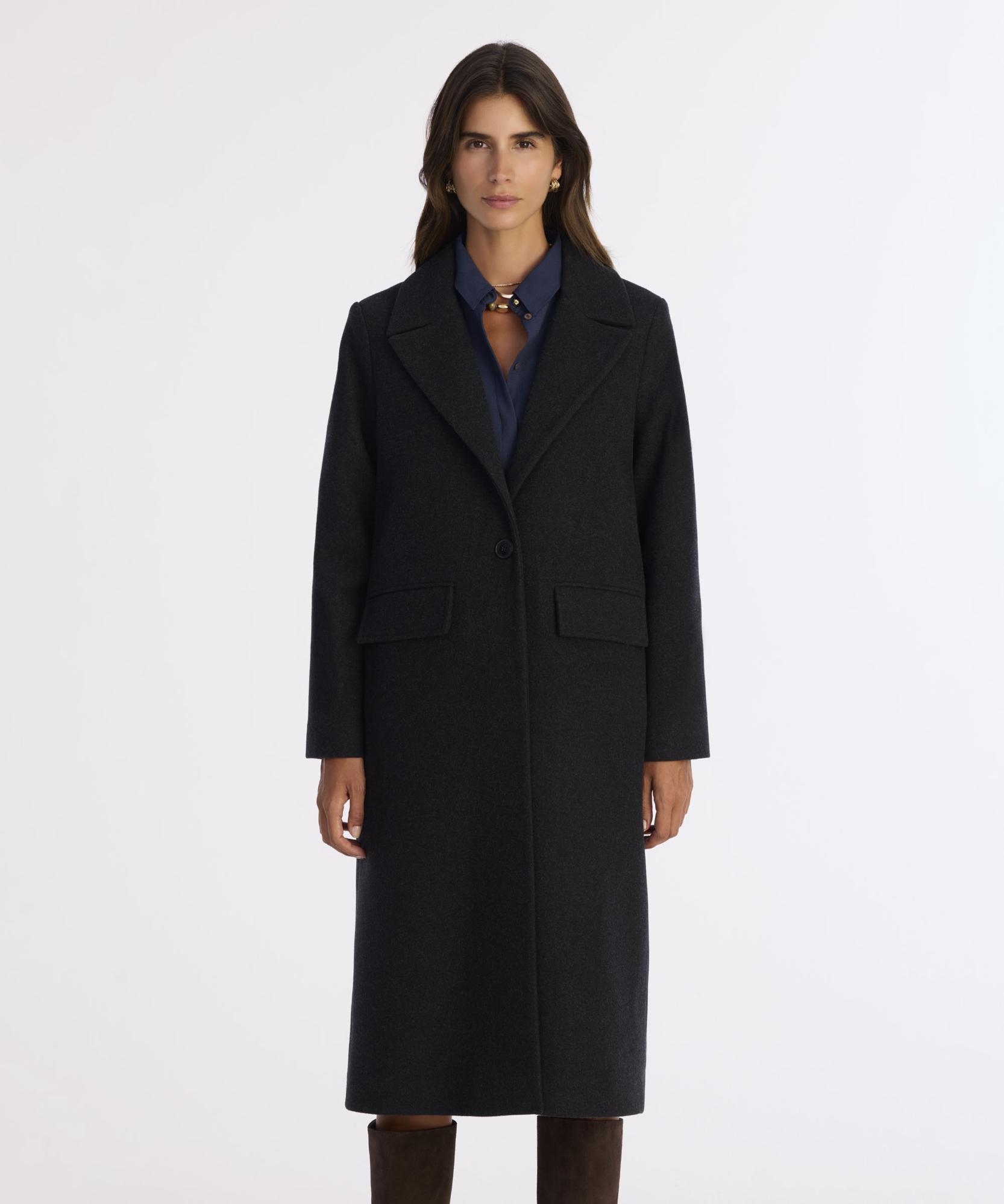 Sade ve zarif tasarımıyla dikkat çeken bu uzun kaban, tek düğme kapamalı yapısıyla modern bir silüet sunuyor. Düz kesimi sayesinde hem klasik hem de günlük kombinlerde rahatça tercih ediliyor. Kalın kumaşı soğuk havalarda sıcak tutarken şıklığınızdan ödün vermemenizi sağlıyor. Diz altına kadar uzanan formu, kalın trikolar ve diz boyu çizmelerle harika bir kış kombini oluşturuyor.